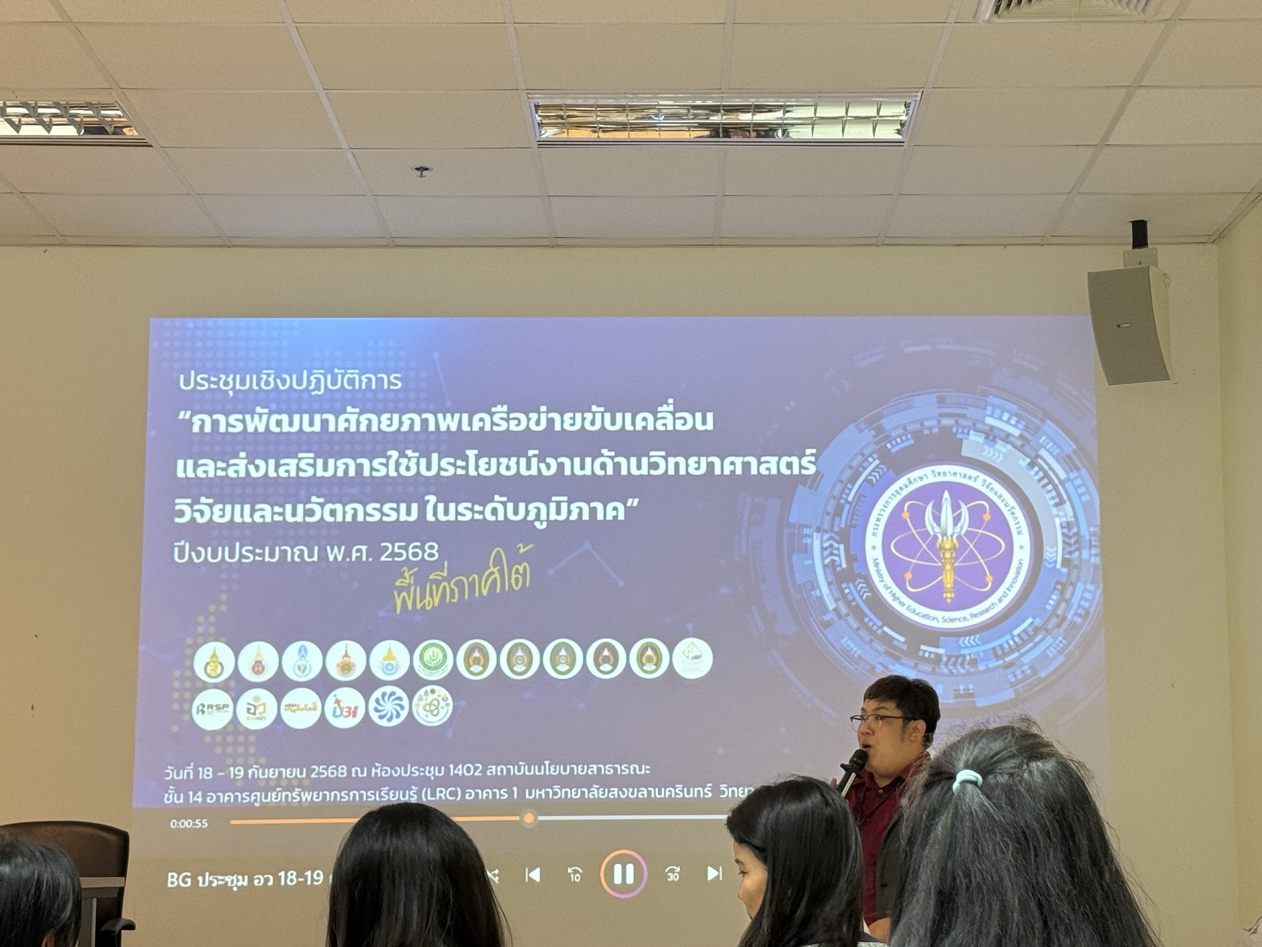 คลินิกเทคโนโลยี มหาวิทยาลัยเทคโนโลยีราชมงคลศรีวิชัย วิทยาเขตนครศรีธรรมราช นำโดย ผู้ช่วยศาสตราจารย์สิริศักดิ์ ชีช้าง ผู้จัดการคลินิกเทคโนโลยี พร้อมด้วยนายสัมพันธ์ พินสุวรรณ์ เจ้าหน้าที่คลินิกเทคโนโลยี ได้เข้าร่วมกิจกรรมประชุมเชิงปฏิบัติการ “การพัฒนาเครือข่ายขับเคลื่อนและส่งเสริมการใช้ประโยชน์ทางด้านวิทยาศาสตร์ วิจัยและนวัตกรรม ในระดับภูมิภาค” ปีงบประมาณ พ.ศ. 2568 พื้นที่ภาคใต้ ซึ่งจัดโดย กองส่งเสริมและประสานเพื่อประโยชน์ทางวิทยาศาสตร์วิจัยและนวัตกรรม(กปว.) สำนักงานปลัดกระทรวงวิทยาศาสตร์ วิจัยและนวัตกรรม เมื่อวันที่ 18-19 กันยายน 2568 ณ ห้องประชุม สถาบันนโยบายสาธารณะ มหาวิทยาลัยสงขลานครินทร์ จังหวัดสงขลา กิจกรรมมีการบรรยายเรื่อง