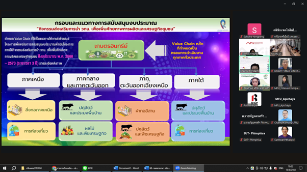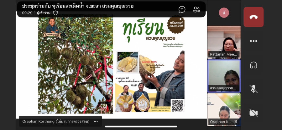 การประชุมจัดขึ้นในรูปแบบออนไลน์ผ่านระบบ Microsoft Teams มีวัตถุประสงค์เพื่อถ่ายทอดแนวทาง แนวปฏิบัติ และการสนับสนุนที่เกี่ยวข้องกับการส่งเสริมศักยภาพผู้ประกอบการท้องถิ่นในการขยายช่องทางการตลาดและยกระดับคุณภาพผลิตภัณฑ์ทุเรียนสะเด็ดน้ำ สินค้า GI จังหวัดยะลา สู่ตลาดออนไลน์อย่างเป็นระบบและยั่งยืน