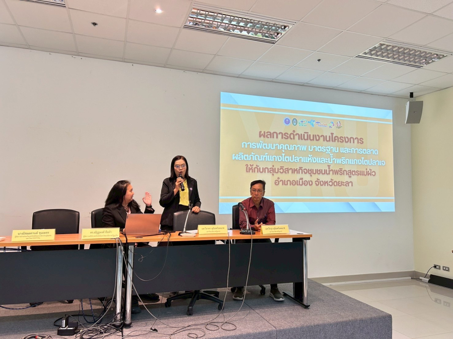 ในวันที่ 15 สิงหาคม 2568 มหาวิทยาลัยราชภัฏยะลา ได้รับรางวัลผลการดำเนินงานดีเด่น จากการดำเนินงานโครงการ “การพัฒนาคุณภาพ มาตรฐาน และการตลาดผลิตภัณฑ์แกงไตปลาแห้งและน้ำพริกแกงไตปลาเจให้กับกลุ่มวิสาหกิจชุมชนน้ำพริกสูตรแม่ผัว อ.เมือง จ.ยะลา” โดย ผู้ช่วยศาสตราจารย์วิภาดา มุนินทร์นพมาศ หัวหน้าโครงการและคณะ ภายใต้กิจกรรมส่งเสริมการนำวิทยาศาสตร์ เทคโนโลยีและนวัตกรรม (วทน.) เพื่อเพิ่มศักยภาพการผลิตและเศรษฐกิจชุมชน แพลตฟอร์มเพิ่มศักยภาพธุรกิจชุมชน (Building Community Enterprise : BCE) ผ่านการประสานโดยคลินิกเทคโนโลยี ภายในงาน อว.แฟร์ 2025 (Sci Power For Future Thailand) ณ เวทีกลาง ชั้น G ศูนย์การประชุมแห่งชาติสิริกิติ์ กรุงเทพมหานคร รายงานโดย นางสาวลักษ์ขณาวดี ชุ่มแก้ว วันที่รายงาน 30/09/2568 [20481] |