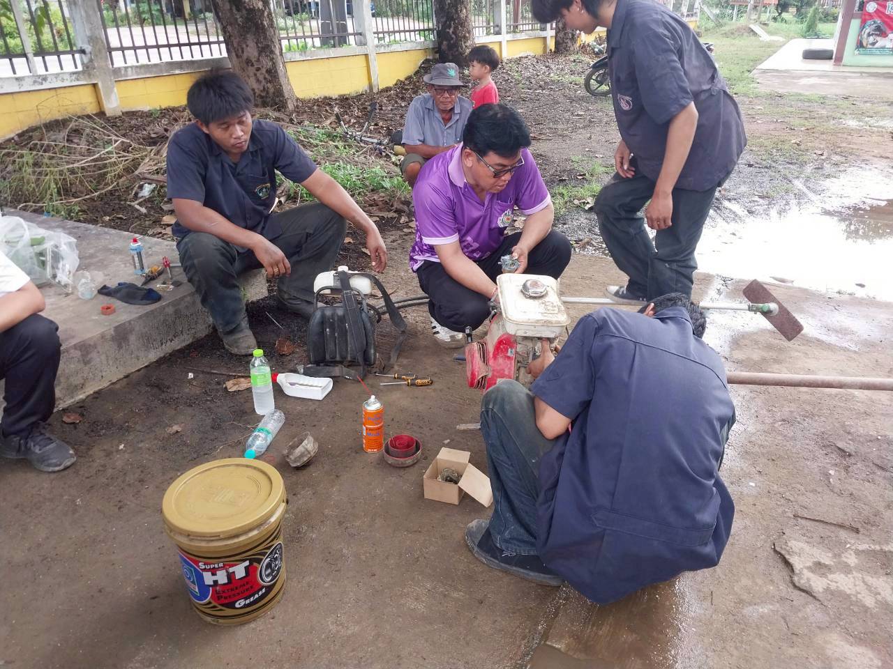 โครงการบริการให้คำปรึกษาและข้อมูลเทคโนโลยีแก่ชุมชนองค์ความรู้ การขยายจุลินทรีย์สังเคราะห์แสง จุลินทรีย์ EM และการปลูกต้นกล้าผักสวนครัว ร่วมกับโครงการบูรณาการการพัฒนาทักษะทางวิชาชีพกับการเสริมสร้างคุณลักษณะอันพึงประสงค์ ของผู้เรียนอาชีวศึกษ (FIX IT – จิตอาสา) ช่วยเหลือน้ำท่วม วันที่ 5 เดือน สิงหาคม พ.ศ.2568 ณ วัดคลองกระจง ตำบลคลองกระจง อำเภอสวรรคโลก จังหวัดสุโขทัย เนื่องจากเมื่อวันที่ 28 กรกฎาคม 2568 ที่ผ่านมา เกิดน้ำท่วมขังในพื้นที่หมูบ้านคลองกระจง ทำให้ในหลายพื้นที่ของชาวบ้าน เช่น บริเวณบ้านเรือนที่อยู่อาศัย พื้นที่ทำการเกษตร วัด เกิดน้ำท่วมขัง น้ำเน่าเสีย และส่งกลิ่นเหม็น จึงได้มีการสอนขยายและใช้จุลินทรีย์ em เพื่อช่วยบำบัดน้ำเสีย และได้มีการแจกต้นพันธุ์ พริกขี้หนูสวน มะเขือจานม่วง และจิงจูฉ่าย เพื่อปลูกทดแทนต้นเก่าที่ถูกน้ำท่วมไป และมีการสอนขยายและใช้จุลินทรีย์สังเคราะห์แสงกับพืชผักสวนครัว รายงานโดย นางสาวธิภารัตน์ สำลีเติมสิริ วันที่รายงาน 14/08/2568 [19715] |