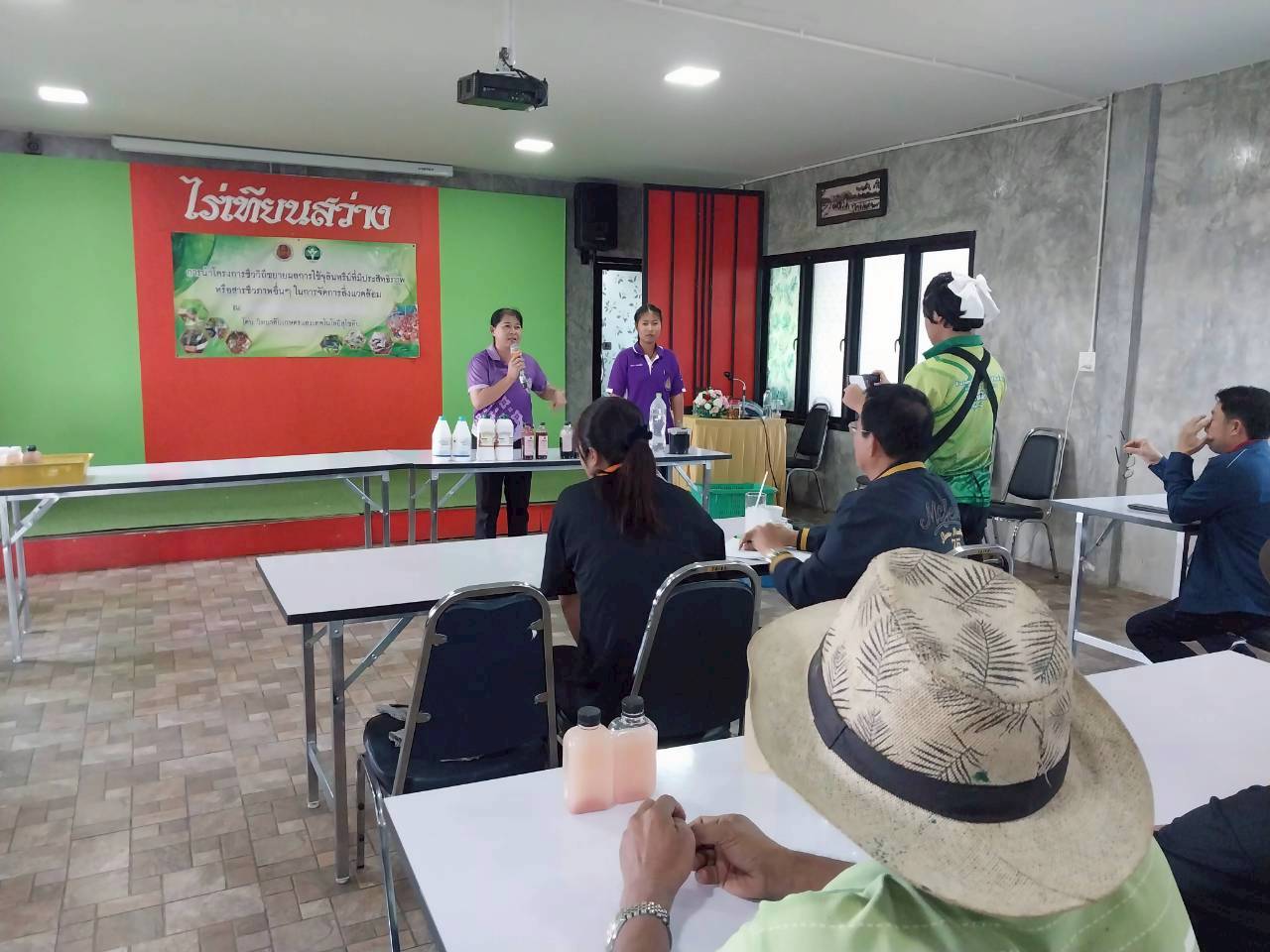 ผล ผลผลิตจุลินทรีย์สังเคราะห์แสง จุลินทรีย์ EM น้ำหมักชีวภาพปลาทู การผลิตวัสดุเพาะกล้า การเพาะกล้าเช่น กล้าพริกขี้สวน มะเขือเปราะ มะเขือเทศราชนี ผลิตภัณฑ์น้ำฝรั่งและฝรั่งแช่บ๋วย การขยายพันธ์ไม้ประดับ