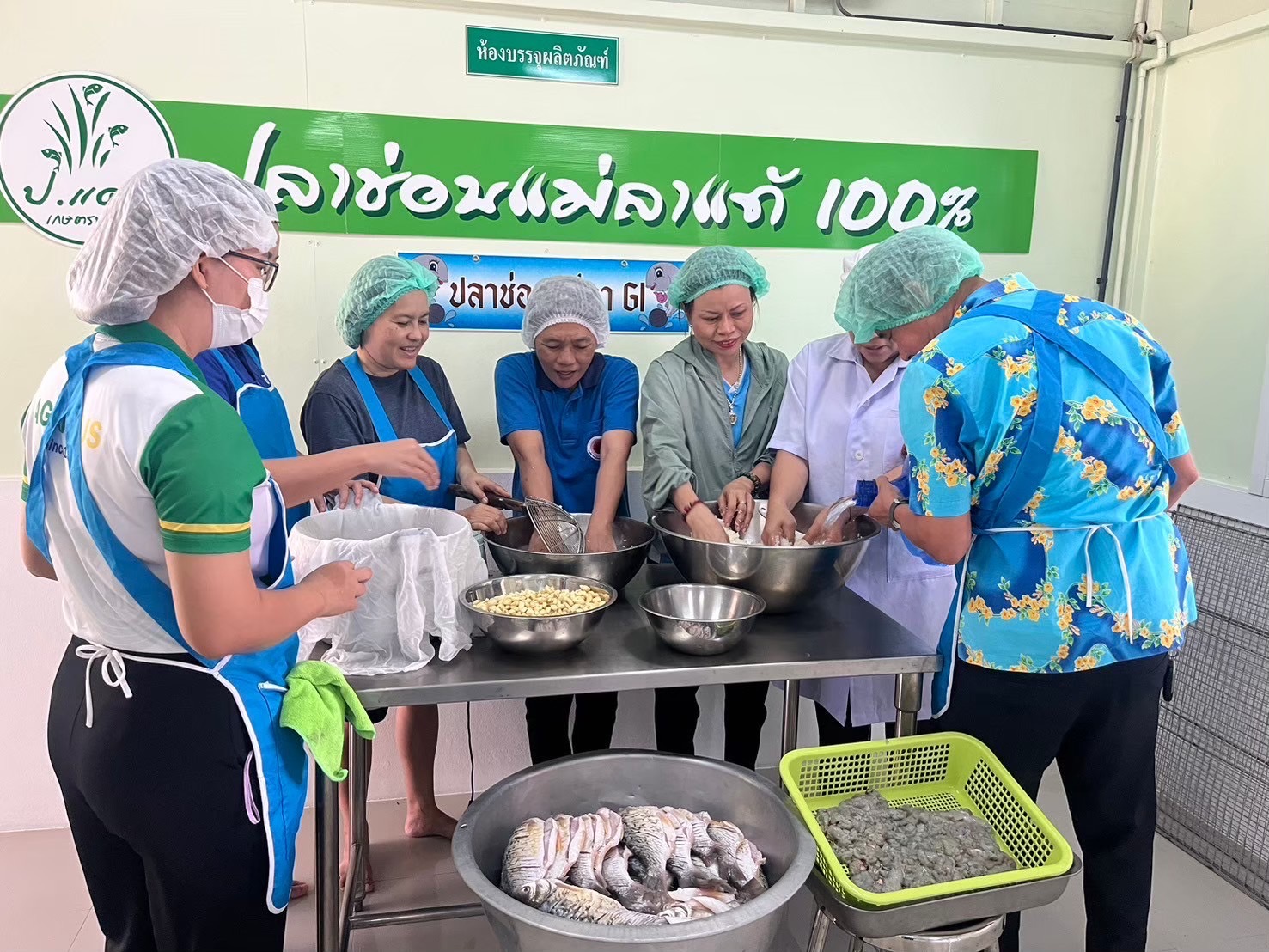 เมื่อวันศุกร์ที่ 28 กุมภาพันธ์ 2568 ศูนย์คลินิกเทคโนโลยี สถาบันวิจัยและพัฒนา มทร.สุวรรณภูมิ จัดโครงการบริการให้คำปรึกษาและข้อมูลเทคโนโลยี เรื่อง "การถ่ายทอดเทคโนโลยีการแปรรูปการทำปลาส้ม" มีวัตถุประสงค์เพื่อถ่ายทอดองค์ความรู้การทำปลาส้มและนำปลามาต่อยอดการทำผลิตภัณฑ์ โดยมี ผู้ช่วยศาสตราจารย์พาขวัญ ทองรักษ์ รองคณบดีคณะเทคโนโลยีการเกษตรและอุตสาหกรรมเกษตร และอาจารย์วรรภา วงศ์แสงธรรม เป็นวิทยากรบรรยายและฝึกปฏิบัติ พร้อมด้วยนางสาวอสมาวัลย์ วุฒิกุลธีรธร ผู้จัดการศูนย์ให้บริการ SME ครบวงจรจังหวัดสิงห์บุรีเข้าร่วมโครงการ ณ กลุ่มวิสาหกิจชุมชนแปลงใหญ่ ปลาช่อนแม่ลา อำเภอบางระจัน จังหวัดสิงห์บุรี รายงานโดย นางสาวชนาพร วัยทรง วันที่รายงาน 07/03/2568 [18664] |