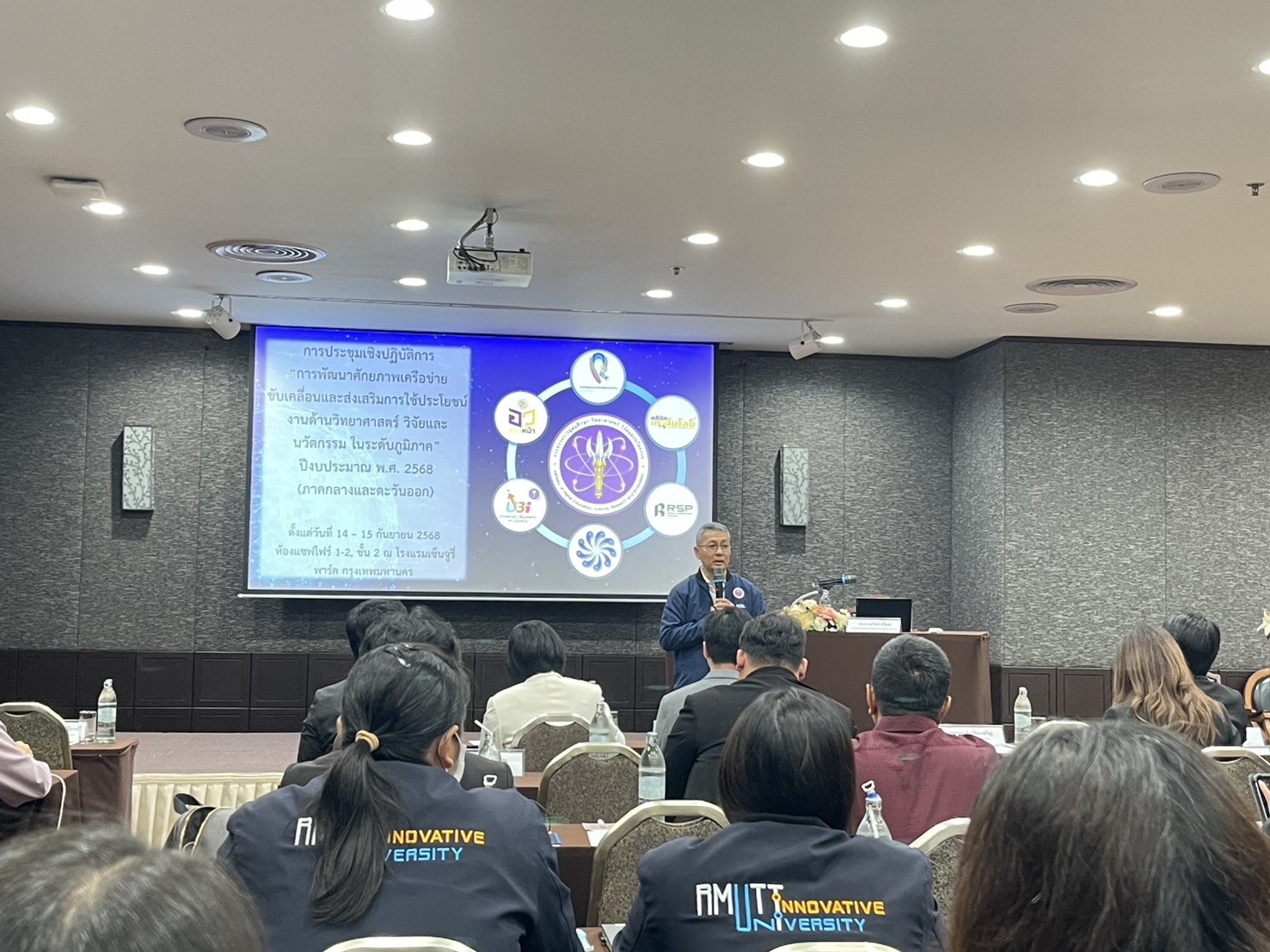 ศูนย์คลินิกเทคโนโลยี ร่วมกับ อว.ส่วนหน้า จังหวัดพระนครศรีอยุธยา เข้าร่วมประชุมเชิงปฏิบัติการ เรื่อง “การพัฒนาศักยภาพเครือข่ายขับเคลื่อนและส่งเสริมการใช้ประโยชน์งานด้านวิทยาศาสตร์ วิจัยและนวัตกรรม ในระดับภูมิภาค” ปีงบประมาณ พ.ศ. 2568 พื้นที่ภาคกลางและภาคตะวันออก นำโดยอาจารย์สุภัทรา วิลามาศ ตำแหน่งผู้ช่วยอธิการบดี พร้อมด้วยอาจารย์ ดร.ศิวัตม์ พลอินทร์ ตำแหน่ง รองผู้อำนวยการสถาบันวิจัยและพัฒนา เข้าร่วมอภิปรายในหัวข้อ การอภิปราย เรื่อง “การเชื่อมโยงกลไกเครือข่ายความร่วมมือในการพัฒนางานด้าน ววน. ในพื้นที่” ระหว่างวันที่ 14-15 กันยายน 2568 ณ โรงแรม เซ็นจูรี่ พาร์ กรุงเทพมหานคร