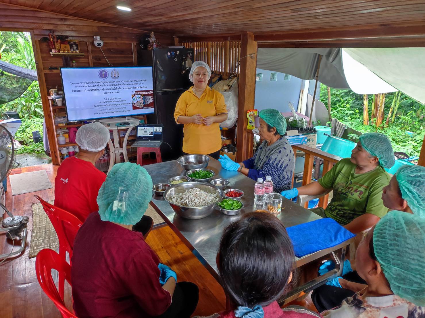 กิจกรรมที่ 2 การถ่ายทอดองค์ความรู้และเทคโนโลยี เรื่อง การพัฒนาต่อยอดผลิตภัณฑ์หมกฮวกแบบแห้ง คณะทำงานโครงการได้จัดกิจกรรมการถ่ายทอดองค์ความรู้และเทคโนโลยี เรื่อง การพัฒนาต่อยอดผลิตภัณฑ์หมกฮวกแบบแห้ง ในวันที่ 4 กรกฎาคม 2568ณ วิสาหกิจชุมชนกบนานครพนม ตำบลธาตุพนมเหนือ อำเภอธาตุพนม จังหวัดนครพนม โดยมีวัตถุประสงค์เพื่อถ่ายทอดองค์ความรู้และเทคโนโลยี เรื่อง การพัฒนาต่อยอดผลิตภัณฑ์หมกฮวกแบบแห้ง แก่ สมาชิกกลุ่มวิสาหกิจชุมชนกบนานครพนม วิทยากรในการอบรมคือ นางภัทราวดี วงษ์วาศ ตำแหน่ง นักวิจัย สถาบันวิจัยและพัฒนา มหาวิทยาลัย นครพนม ที่มีความเชี่ยวชาญทางด้านการแปรรูปอาหาร การดำเนินกิจกรรมประกอบด้วยขั้นตอนดังต่อไปนี้ 1) คู่มือการอบรมเรื่อง “การพัฒนาต่อยอดผลิตภัณฑ์หมกฮวกแบบแห้ง” ประกอบคำบรรยาย ให้ความรู้ผ่านภาพ เสียง สื่อ power point และตัวอย่างจริง 2) การอบรม “การพัฒนาต่อยอดผลิตภัณฑ์หมกฮวกแบบแห้ง” ประกอบ 2.1) บรรยายเรื่อง การพัฒนาต่อยอดผลิตภัณฑ์หมกฮวกแบบแห้ง 2.2) ปฏิบัติการ การพัฒนาต่อยอดผลิตภัณฑ์หมกฮวกแบบแห้ง3) ระยะเวลาที่ใช้ในการอบรมเชิงปฏิบัติการ 1วันต่อครั้ง จำนวน 1ครั้ง 4) กลุ่มเป้าหมายในการถ่ายทอดเทคโนโลยีคือ วิสาหกิจชุมชนกบนานครพนม 5) วิทยากรในการฝึกอบรมจำนวน 1 ท่าน คือ นางภัทราวดี วงษ์วาศ ตำแหน่ง นักวิจัย สถาบันวิจัยและพัฒนา มหาวิทยาลัย นครพนม ที่มีความเชี่ยวชาญทางด้านการแปรรูปอาหาร 6) สถานที่การอบรมคือ วิสาหกิจชุมชนกบนานครพนม ตำบลธาตุพนมเหนือ อำเภอธาตุพนม จังหวัดนครพนม 7) ผู้เข้ารับการอบรมมีความพึงพอใจเฉลี่ยในระดับมากที่สุด (4.80) คิดเป็นร้อยละ 96 รายงานโดย นางภัทราวดี วงษ์วาศ วันที่รายงาน 01/10/2568 [20820] |