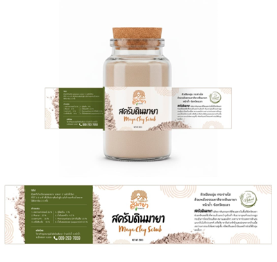 - การออกแบบต้นแบบฉลากบรรจุภัณฑ์สำหรับผลิตภัณฑ์สครับดินมายา จำนวน 2 รูปแบบ ได้แก่ ฉลากสำหรับซองและฉลากสำหรับขวดแก้ว โดยคำนึงถึงความเหมาะสมกับการใช้งานและการนำเสนอภาพลักษณ์ของผลิตภัณฑ์