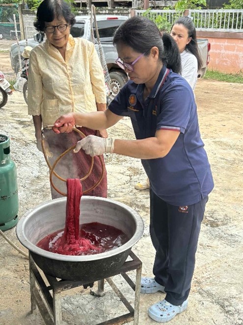 กิจกรรมที่ 5. การอบรมเชิงปฏิบัติการเกี่ยวกับการขอรับรองผลิตภัณฑ์ผ้าไหมไทย “ตรานกยูงพระราชทาน” จากการจัดกิจกรรมทั้ง 5 กิจกรรมนั้น มีหน่วยงานหลายภาคส่วนที่เข้าร่วมในการจัดกิจกรรมดังกล่าว ได้แก่ ศูนย์หม่อมไหมเฉลิมพระเกียรติฯ มหาสารคาม ได้มอบพันธุ์หม่อน (หม่อนพันธุ์สกลนคร และหม่อนพันธุ์บุรีรัมย์) และพันธุ์หนอนไหม (ไหมพันธุ์ไทยพื้นบ้าน) จำนวน 100 ถุงให้แก่ เทศบาลตำบลหัวดง เพื่อจะแจกจ่ายให้กับกลุ่มวิสาหกิจชุมชนทอผ้าไหมมัดหมี่ซึ่งในกลุ่มวิสาหกิจชุมชนฯ ก็มีกลุ่มเป้าหมายที่ร่วมโครงการด้วย ซึ่งพันธุ์หม่อนและพันธุ์หนอนไหมจะต้องสามารถระบุที่มาได้จึงจะของเครื่องหมายรับรองผลิตภัณฑ์ผ้าไหมไทย และอีกอย่างเส้นไหมที่จะนำมาทอจะต้องเป็นไหมบ้านเท่านั่น ในส่วนการย้อมสีธรรมชาติได้มีศูนย์นวัตกรรมไหม มหาวิทยาลัยมหาสารคาม เข้ามาฝึกอบรมการย้อมสีผ้าไหมมัดหมี่ ซึ่งทางผู้ร่วมโครงการได้ร่วมกันย้อมสีผ้าไหมมัดหมี่ ซึ่งสามารถย้อมได้ทั้งสีเคมีและสีธรรมชาติ แต่เมื่อนำมาทดสอบกับน้ำยาของศูนย์หม่อมไหมเฉลิมพระเกียรติฯ มหาสารคามจะต้องไม่ตกสีถึงจะผ่าน และจะได้เครื่องหมายรับรองผลิตภัณฑ์ผ้าไหมไทย“ตรานกยูงพระราชทาน”ซึ่งทางกลุ่มวิสาหกิจชุมชนทอผ้าไหมมัดหมี่บ้านหนองหิน ได้รับใบรับรองแสดงเครื่องหมายรับรองมาตรฐานผลิตภัณฑ์ผ้าไหม ประเภท Classic Thai Silk เป็นตราเครื่องหมายนกยูงสีเงิน รายงานโดย นางสาวสิริกร งามสมัย วันที่รายงาน 05/09/2568 [19869] |