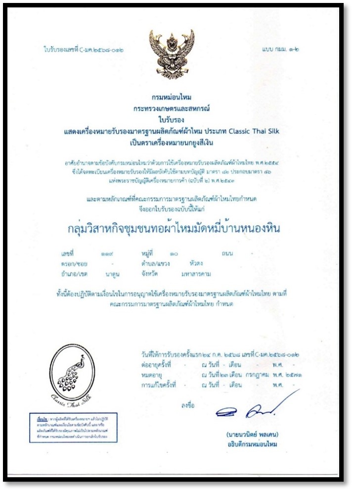 2568 การพัฒนาผ้าไหมมัดหมี่บ้านหนองหินสู่มาตรฐานตรานกยูงพระราชทาน 0