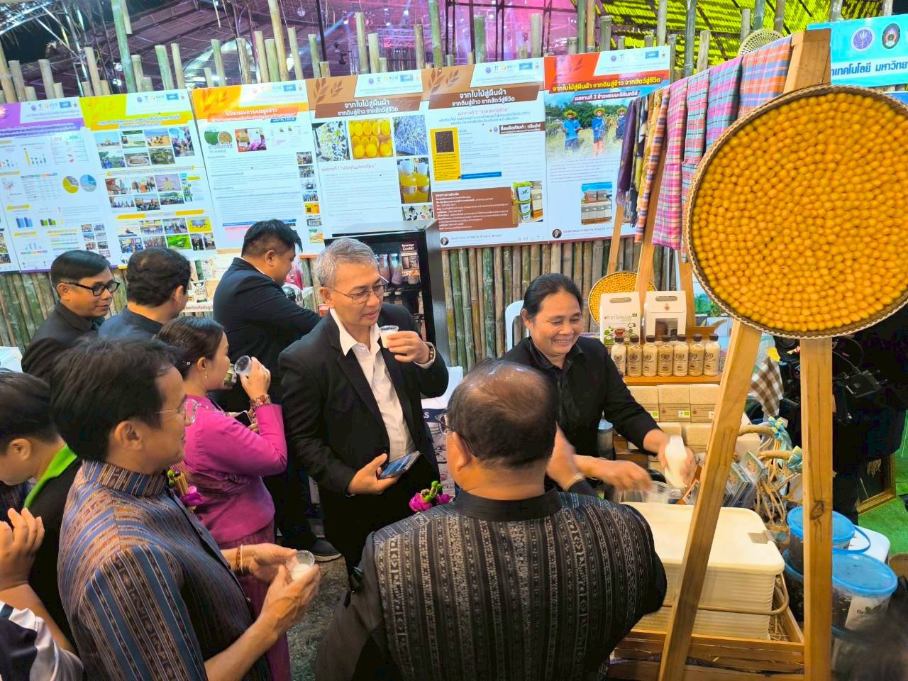มหาวิทยาลัยเทคโนโลยีราชมงคลอีสาน วิทยาเขตสุรินทร์ ร่วมจัดนิทรรศการและร่วมงาน “เทศกาลข้าวหอมมะลิโลก ครั้งที่ 25” นำองค์ความรู้สู่การพัฒนาชุมชนและเศรษฐกิจฐานราก จังหวัดร้อยเอ็ด ณ อ่างเก็บน้ำธวัชชัย ตำบลมะอึ อำเภอธวัชบุรี จังหวัดร้อยเอ็ด ระหว่างวันที่ 10–14 ธันวาคม 2568 โดยมุ่งเน้นการนำงานวิจัยและนวัตกรรมสู่การปฏิบัติจริง เพื่อยกระดับคุณภาพชีวิตชุมชนและเพิ่มมูลค่าสินค้าเกษตร โดยมีนายชัชวาลย์ ไทยยิ่ง นางสาวกรรณทิมา พันธ์ศรี บุคลากรสังกัดสำนักงานวิทยาเขสุรินทร์ เป็นเจ้าหน้าประจำบูท และได้จัดนิทรรศการ ชื่อผลงาน : นิทรรศการ “จากใบไม้สู่ผืนผ้า จากดินสู่ข้าว จากสัตว์สู่ชีวิต” ได้นำเอา 1. ข้าวหอมมะลิอินทรีย์สุรินทร์ จากสายพันธุ์ข้าวดั้งเดิม “ข้าวขาวดอกมะลิ 105” ที่ปลูกจากนาข้าวของมหาวิทยาลัยฯ มาจัดแสดง 2. นิทรรศการเกี่ยวกับผ้าไหม นวัตกรรมผ้าอีโค่ปริ้น และมีผลิตภัณฑ์จากไหม เช่น สบู่รังไหม โลชั่นไหม น้ำยาซักผ้าไหม เป็นต้น 3. ผลิตภัณฑ์ในโครงการหมู่บ้านควายไทยแฮปปี้สู่เศรษฐกิจที่ยั่งยืน (SCI) มาจัดแสดง เช่น น้ำนมควาย ปุ๋ยมูลควายอัดเม็ด เป็นต้น โดยได้รับความสนใจจากผู้ที่มาชมงานเทศกาลข้าวหอมมะลิโลก ครั้งที่ 25 เป็นจำนวนมาก และมีการจัดฝึกอบรมระยะสั้น ชื่อหลักสูตร การทำวาฟเฟิลกรอบ จากแป้งข้าว 3 สี ชื่อวิทยากร อาจารย์นฤทธิ์ วาดเขียน อาจารย์สาขาอุตสาหกรรมเกษตร รายงานโดย นายชัชวาลย์ ไทยยิ่ง วันที่รายงาน 23/01/2569 [21004] |