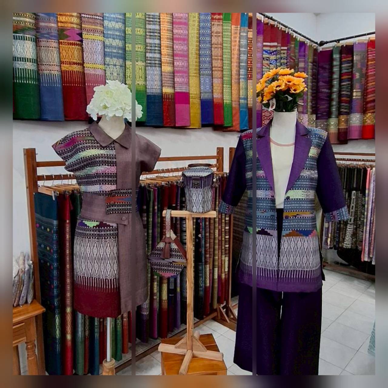 ผลิตภัณฑ์เสื้อผ้าสําเร็จรูปผ้าทอลายคำเคิบผสมลายน้ำไหล ชม 4 ครั้ง