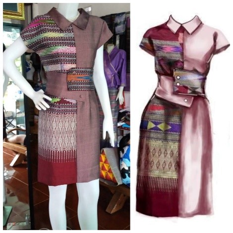 การออกแบบการตัดเย็บเน้นการออกแบบดีไซน์ให้ที่มีความทันสมัย โดยนำผ้าทอลายคำเคิบผสมลายน้ำไหล มาตกแต่งและตัดเย็บให้คงความเป็นเอกลักษณ์ผ้าทอจังหวัดน่าน ในการสร้างแบบและออกแบบเสื้อผ้าสำเร็จรูปเป็นชุดแซกหรือชุดเดรส เสื้อคลุมผู้หญิง ด้วยการวางแบบ การวางผ้า การเลือกลายผ้าเพื่อใช้ในการตกแต่งเสื้อ การเลือกโทนสี ร่วมถึงการให้ความรู้ในการเลือกซื้อวัสดุอุปกรณ์ วัสดุตกแต่งเสื้อผ้าที่เหมาะสมกับรูปแบบการตัดเย็บ