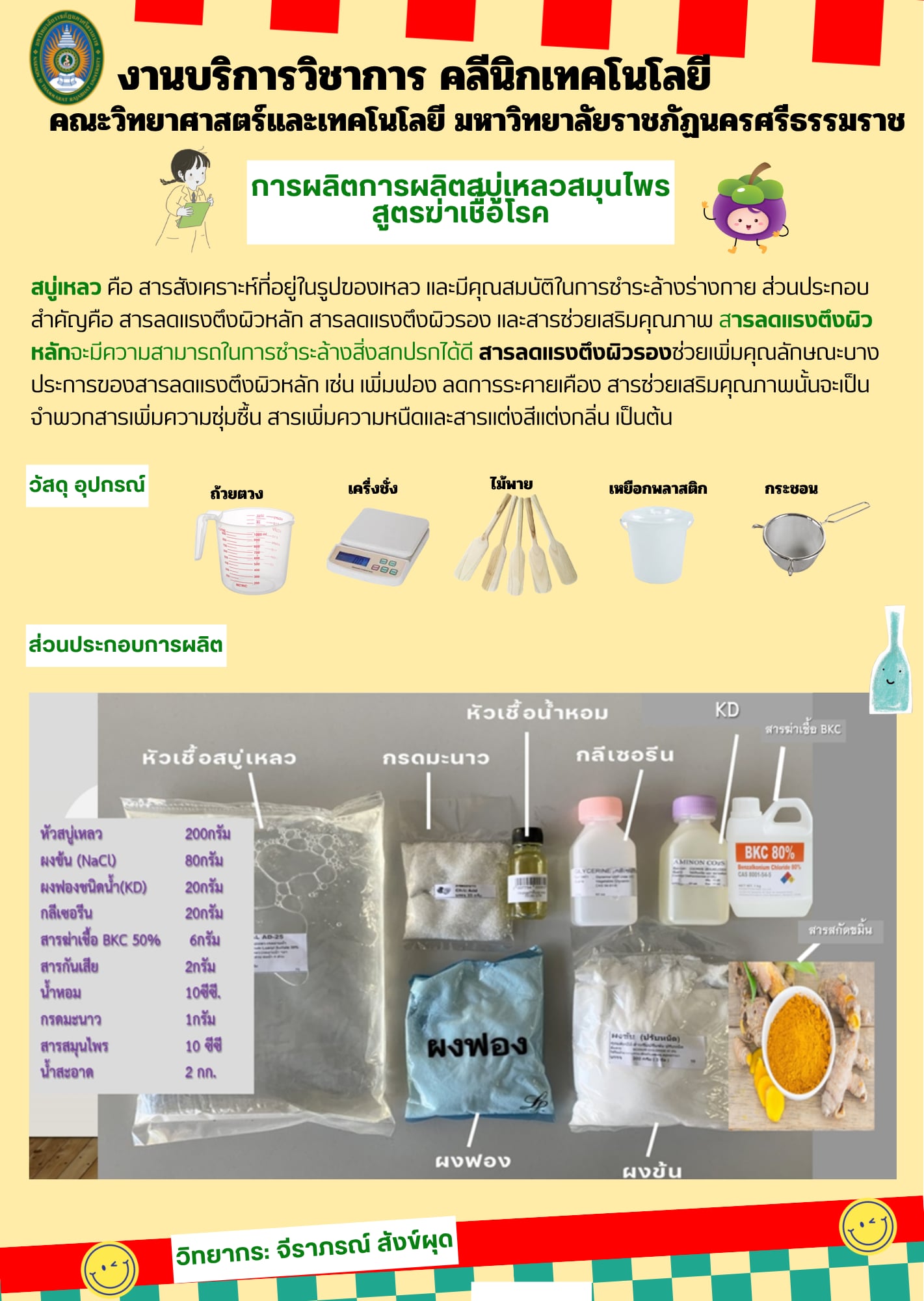 การผลิตสบู่เหลวสมุนไพร สูตรฆ่าเชื้อโรค ชม 12 ครั้ง