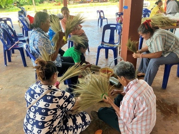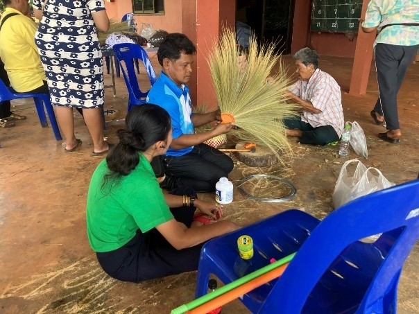 ภาพกิจกรรม การทำไม้กวาดดอกหญ้าของกลุ่มชุมชนบ้านไตรรัตน์โดย วิทยากรจาก ผู้ใหญ่ ยอด อิ่มพลับ หมู่ 2 บ้านวังสิงห์