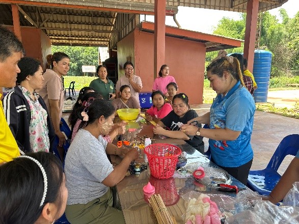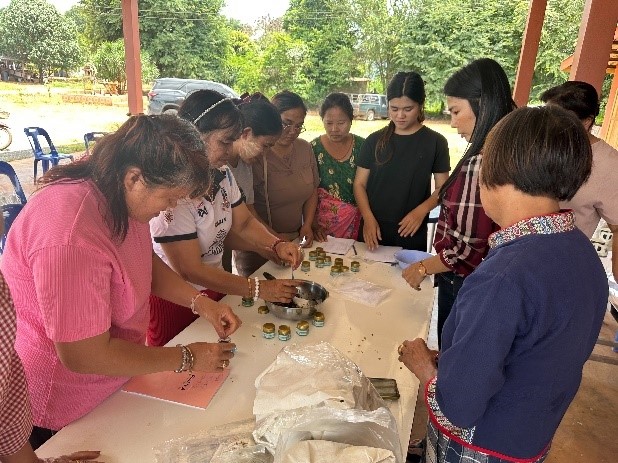 ภาพกิจกรรม การทำยาดมของกลุ่มชุมชนบ้านไตรรัตน์โดย วิทยากรจาก อดีตผู้ใหญ่ บำรุง มะทะเอ หมู่ 8