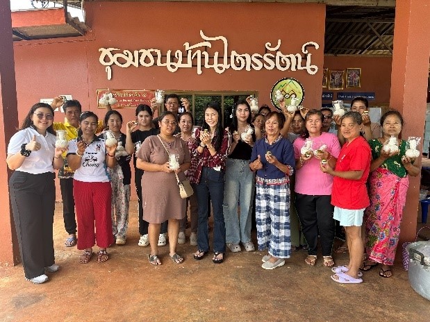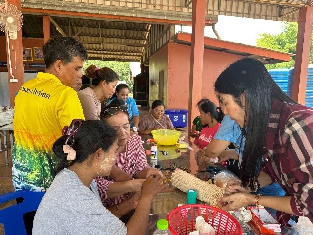 ผล : 1) ได้ปฏิบัติจริง และมีตัวอย่างให้ดู ในการทำผลิตภัณฑ์ อย่างน้อย 3 ชนิด 2) การใช้ทรัพยากรในพื้นที่ในการสร้างรายได้เสริมใหม่ๆ 3) ได้วิทยากรตัวคูณของกลุ่มชุมชนบ้านไตรรัตน์ อย่างน้อย 9 คน