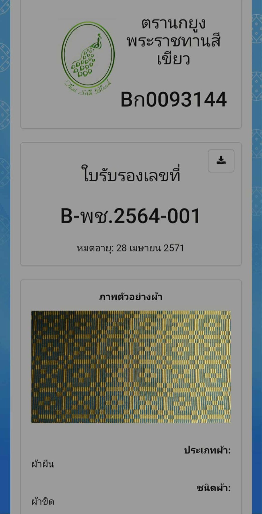 ผล : ผู้เข้ารับการถ่ายทอดความรู้และเทคโนโลยีจำนวน 50 คน การถ่ายทอดเทคโนโลยีจำนวน 5 เรื่อง และการพัฒนาผลิตภัณฑ์ที่ได้รับการรับรองมาตรฐานนกยูงจำนวน 3 ผลิตภัณฑ์