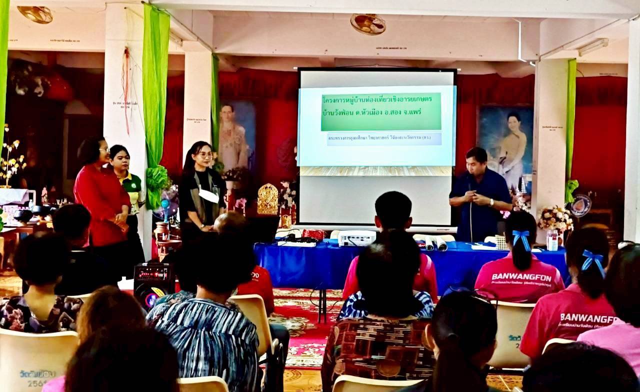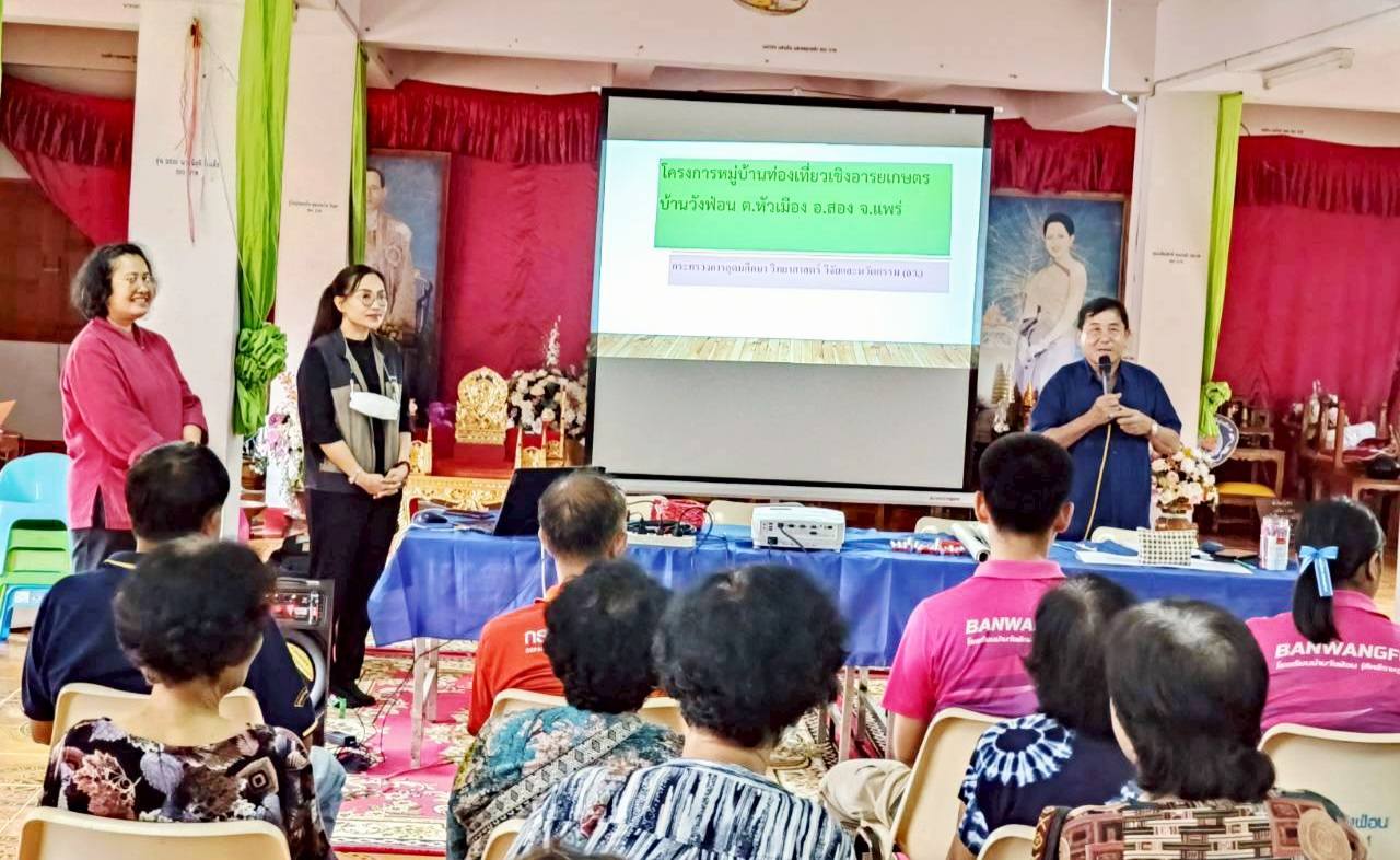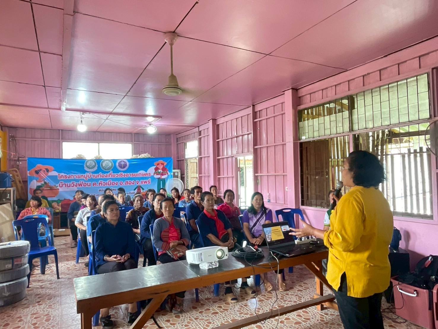 วันที่ 19 ก.ค. 68 จัดโครงการอบรมหลักสูตร"รูปแบบการท่องเที่ยวเชิงอารยเกษตร และการสำรวจทรัพยากร การท่องเที่ยวชุมชน ภายใต้โครงการ หมู่บ้านท่องเที่ยวเชิงอารยเกษตร บ้านวังฟ่อน ตำบลหัวเมือง อำเภอสอง จังหวัดแพร่ โดย ผู้ร่วมกิจกรรมและผู้มีส่วนได้ส่วนเสีย กลุ่มเป้าหมายหลักชาวบ้าน/กลุ่มเกษตรกรในชุมชนบ้านวังฟ่อน เยาวชนและผู้นำชุมชน จำนวน 50 คน ชุมชนได้รับองค์ความรู้ในการสร้างรูปแบบการท่องเที่ยวเชิงอารยเกษตร เกิดการมีส่วนร่วมของคนในพื้นที่ในการสำรวจและพัฒนาเส้นทางท่องเที่ยว เกิดความเข้าใจในการเชื่อมโยงการเกษตร วัฒนธรรม และการท่องเที่ยว ชุมชนสามารถจัดทำเส้นทางการท่องเที่ยวเชิงอารยเกษตรได้จริง เกิดเครือข่ายการท่องเที่ยวชุมชนร่วมกับหน่วยงานสนับสนุน ชุมชนมีโอกาสสร้างรายได้เสริมจากการท่องเที่ยว ควบคู่ไปกับการเกษตร บ้านวังฟ่อนมีภาพลักษณ์ใหม่ เป็น “หมู่บ้านต้นแบบการท่องเที่ยวเชิงอารยเกษตร”