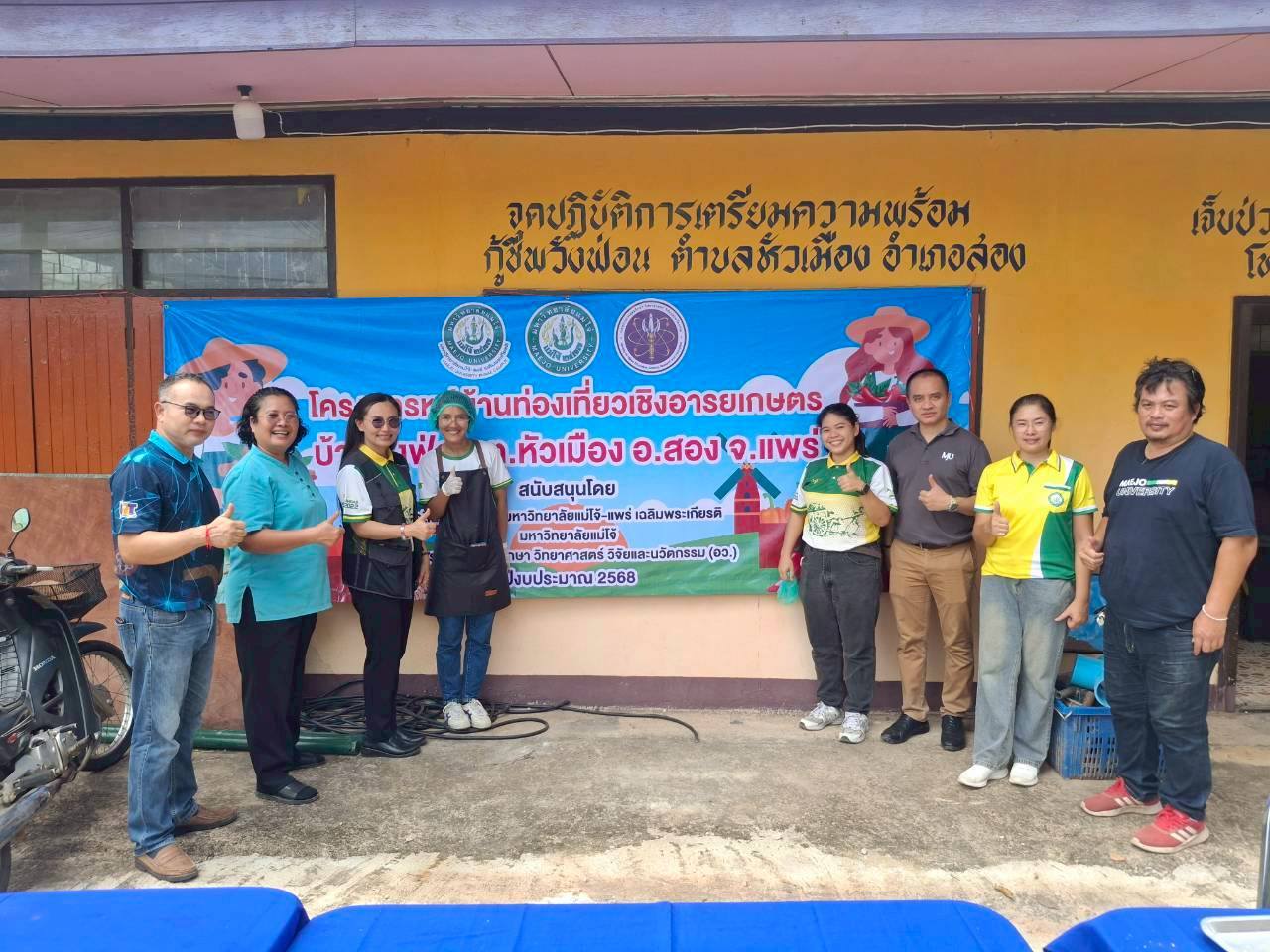 วันอาทิตย์ที่ 31 สิงหาคม 2568 นำชาวบ้าน วังฟ่อน ต.หัวเมือง อ.สอง จังหวัดแพร่ การเดินทางศึกษาดูงานเส้นทางการท่องเที่ยวเชิงเกษตร บ้านบุญแจ่ม ต.น้ำเลา อ.ร้องกวาง ,สวนไร่ไออุ่น ต.บ้านเวียง อ.ร้องกวาง ไร่ธนโชติ ต.ช่อแฮ อ.เมืองแพร่ ,บ้านไร่เพิ่มพูน ต.ช่อแฮ อ.เมืองแพร่ จังหวัดแพร่ โครงการหมู่บ้านท่องเที่ยวเชิงอารยเกษตร บ้านวังฟ่อน ต.หัวเมือง อ.สอง จ.แพร่ สนับสนุนโดยโครงการคลินิกเทคโนโลยี มหาวิทยาลัยแม่โจ้-แพร่ เฉลิมพระเกียรติ ประจำปีงบประมาณ พ.ศ. 2568 โดย ผู้ร่วมกิจกรรมและผู้มีส่วนได้ส่วนเสียชาวบ้าน/เกษตรกรบ้านวังฟ่อน(กลุ่มเป้าหมายหลัก) กลุ่มท่องเที่ยวเชิงอารยเกษตรบ้านวังฟ่อน ผู้นำชุมชน จำนวน 30 คน สิ่งที่ได้จากการทำกิจกรรม ชาวบ้านได้เรียนรู้ รูปแบบการจัดการท่องเที่ยวเชิงเกษตรจากพื้นที่ต้นแบบ ได้เห็นตัวอย่าง การจัดการแหล่งท่องเที่ยวจริง เช่น การจัดเส้นทาง, การบริการนักท่องเที่ยว, การนำเสนอเรื่องราว ได้แนวคิดด้าน การเพิ่มมูลค่าผลผลิตเกษตร และการเชื่อมโยงกับการท่องเที่ยว เกิดการแลกเปลี่ยนประสบการณ์ตรงระหว่างชุมชนบ้านวังฟ่อนกับเจ้าของแหล่งต้นแบบ ผลผลิต (Outputs): แนวคิดใหม่ ๆ ในการออกแบบเส้นทางและกิจกรรมท่องเที่ยวของบ้านวังฟ่อน เครือข่ายความร่วมมือระหว่างชุมชนต่าง ๆ ในจังหวัดแพร่ แผนเบื้องต้นสำหรับการปรับใช้ในพื้นที่บ้านวังฟ่อน ผลลัพธ์ (Outcomes): ชุมชนบ้านวังฟ่อนมีมุมมองกว้างขึ้นในการพัฒนาการท่องเที่ยวเชิงเกษตร เกิดแรงบันดาลใจและความตระหนักในการปรับปรุง/ยกระดับกิจกรรมของชุมชน เพิ่มศักยภาพการจัดการท่องเที่ยวในระยะยาว และมีต้นแบบอ้างอิงชัดเจน วางรากฐานการสร้างเครือข่ายการท่องเที่ยวเชิงเกษตรร่วมกับพื้นที่อื่นในจังหวัดแพร่