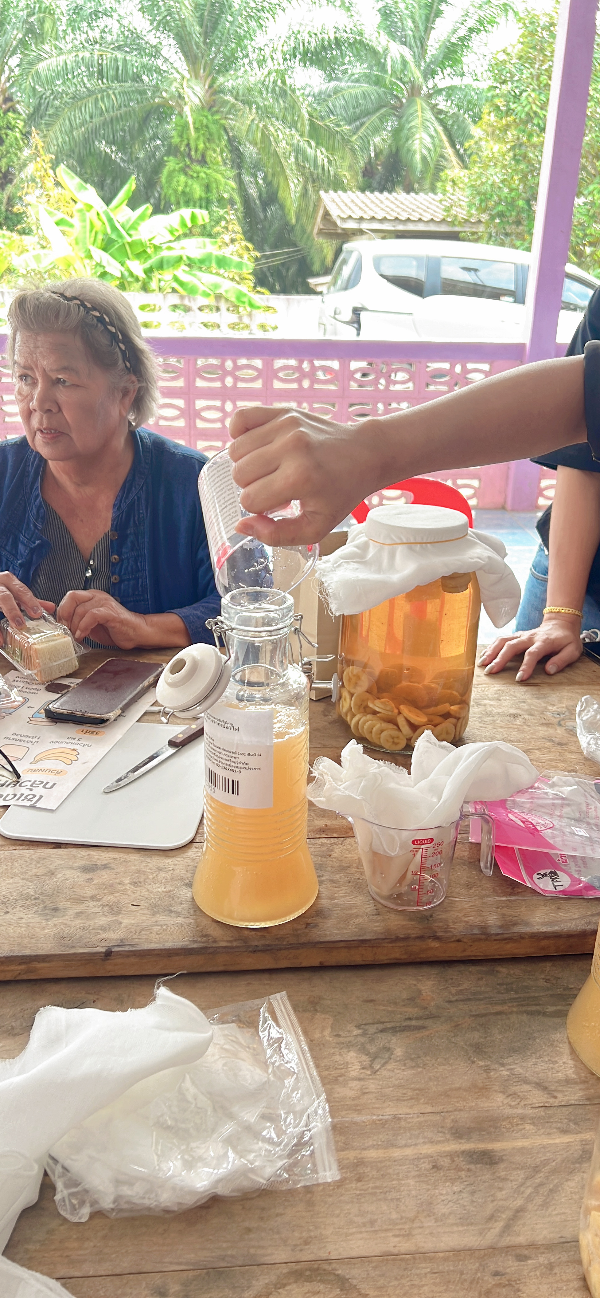 รายงานผลการปฏิบัติการ วันที่ 29 ตุลาคม 2568 โครงการหมู่บ้านกล้วยหอมทองไซเดอร์ ผศ.ดรงมัลลิกา จินดาซิงห์ และผศ.ดร.สุทธิรักษ์ ผลเจริญ มหาวิทยาลันแม่โจ้-ชุมพร และคณะดำเนินการถ่ายทอดองค์ความรู้และฝึกอบรมการแปรรูปกล้วยหอมทอง โดยการทำไซเดอร์กล้วยหอมทอง ให้แก่สมาชอกกลุ่มหมู่บ้านกล้วยหอมทอง จำนวน 25 คน ที่หมู่ 4 ตำบล ทุ่งคาวัด อำเภอละแม จังหวัดชุมพร ผลผลิต (Outputs)