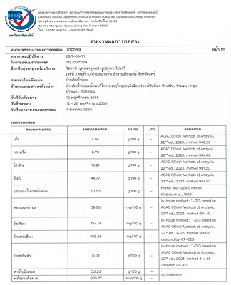 กิจกรรมที่1การอบรมให้ความรู้เรื่องการจัดทำข้อมูลฉลากและโภชนาการ ในวันที่ 20 ตุลาคม 2568 ผู้ช่วยศาสตราจารย์ ดร. อิศรา วัฒนนภาเกษม และคณะ ได้จัดกิจกรรมการอบรมให้ความรู้เรื่องการจัดทำข้อมูลฉลากและโภชนาการ มีผู้เข้ารับการอบรมจำนวน 25 คน โดยมีวัตถุประสงค์เพื่อเสริมสร้างความรู้และทักษะให้แก่วิสาหกิจชุมชนกลุ่มแปรรูปอาหารบ้านโป่งศรี หมู่ 10 ในการจัดทำฉลากอาหารได้อย่างถูกต้องตามกฎหมาย ภายหลังการอบรมผู้เข้ารับการอบรมสามารถจัดทำและปรับปรุงข้อมูลฉลากได้ด้วยตนเอง เข้าใจหลักการแสดงข้อมูลโภชนาการ และนำไปใช้เพิ่มความน่าเชื่อถือและมูลค่าสินค้า เพื่อรองรับการขยายตลาดและการพัฒนาผลิตภัณฑ์น้ำพริกน้ำย้อย ผลลัพธ์ คือ กลุ่มวิสาหกิจชุมชนฯ สามารถจัดทำฉลากอาหารได้ถูกต้องตามหลักเกณฑ์ที่กำหนด โดยได้นำข้อแนะนำเพื่อไปทำการปรับปรุงสำหรับการจัดทำข้อมูลเพิ่มเติม คือ ให้ระบุข้อมูลส่วนประกอบ วันผลิตและควรบริโภคก่อน ซึ่งจะทำให้ได้ข้อมูลครบถ้วนและสามารถนำไปยื่นเอกสารประกอบในการยื่นของมาตรฐานผลิตภัณฑ์น้ำพริกน้ำย้อยได้ การสร้างความรู้ความเข้าใจในการแสดงข้อมูลโภชนาการเบื้องต้น สามารถนำไปใช้เพิ่มความน่าเชื่อถือและมูลค่าสินค้า พร้อมต่อยอดสู่การขยายตลาดในระดับชุมชน นอกจากนั้นยังทำการวิเคราะห์คุณภาพของทางเคมีของผลิตภัณฑ์น้ำพริกน้ำย้อย เพื่อให้ได้ตามคุณภาพที่จำเป็นต้องควบคุม คือ ปริมาณความชื้น (Moisture Content) เพื่อป้องกันการเสื่อมสภาพและเชื้อรา ต้องไม่เกินร้อยละ 20 โดยน้ำหนัก ซึ่งผลิตภัณฑ์น้ำพริกน้ำย้อยมีความชื้นประมาณร้อยละ 3.18 ±0.10 ค่าปริมาณน้ำอิสระ 0.276 ±0.001 ซึ่งค่าที่พบในผลิตภัณฑ์มีค่าที่เป็นไปตามเกณฑ์มาตรฐานของผลิตภัณฑ์น้ำพริกแห้งป่น (มผช. 130/2546) ส่วนค่าของการวิเคราะห์ค่าเพอร์ออกไซด์ (peroxide value : PV) ไม่พบปริมาณของค่าเพอร์ออกไซด์ในผลิตภัณฑ์ นอกจากนั้นยังวิเคราะห์คุณภาพทางด้านจุลินทรีย์ โดยมาตรฐานผลิตภัณฑ์ชุมชนน้ำพริกแห้งป่น มผช.130/2546 กำหนดเกี่ยวกับปริมาณยีสต์และรา ต้องไม่เกิน 100 โคโลนีต่อตัวอย่างอาหาร 1 กรัม และปริมาณจุลินทรีย์ทั้งหมด ไม่เกิน 1.00 x 104 โคโลนีต่อตัวอย่างอาหาร 1 กรัม และปริมาณเชื้อเอสเชอริเชียโคไล(Escherichia coli) วิเคราะห์ด้วยวิธีเอ็มพีเอ็น ต้องน้อยกว่า 3 ต่อตัวอย่าง 1 กรัม โดยผลิตภัณฑ์น้ำพริกน้ำย้อยมีปริมาณเชื้อไม่เกินกว่าที่มาตรฐานกำหนด รายงานโดย ผศ.ดร. อิศรา วัฒนนภาเกษม วันที่รายงาน 29/12/2568 [20894] |