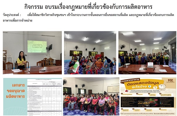 กิจกรรมที่ 2 อบรมเรื่องกฎหมายที่เกี่ยวข้องกับการผลิตอาหาร วันที่ 30-31 กรกฎาคม 2568 ในการจัดกิจกรรมอบรมเรื่องกฎหมายที่เกี่ยวข้องกับการผลิตอาหาร เพื่อให้สมาชิกวิสาหกิจชุมชนกลุ่มแปรรูปอาหารบ้านโป่งศรี หมู่ 10 จำนวน 29คนเข้าใจในกระบวนการขั้นตอนการยื่นเอกสารประกอบการของสถานที่ผลิต รวมถึงข้อกำหนดกฎหมายที่เกี่ยวข้องกับการผลิตอาหาร เพื่อให้บรรลุวัตุประสงค์ของการดำเนินโครงการ โดยวิทยากร ผศ.ดร.อิศรา วัฒนนภาเกษม และเภสัชกรรติพร สำเภานนท์ สำนักงานสาธารณสุขจังหวัดแพร่ กลุ่มงานคุ้มครองผู้บริโภคและเภสัชสาธารณสุข ได้ดำเนินการอบรมสร้างความรู้ความเข้าใจเกี่ยวกับกระบวนการขั้นตอนที่เกี่ยวข้องกับการยื่นขอสถานที่ผลิตอาหาร ณ ศาลาอเนกประสงค์ เลขที่ 2 หมู่ 10 ตำบลบ้านถิ่น อำเภอเมือง จังหวัดแพร่ ให้แก่กลุ่มวิสาหกิจชุมชนกลุ่มแปรรูปอาหารบ้านโป่งศรี หมู่ 10 ผลการดำเนินงาน โดยจากกิจกรรมอบรมเรื่องกฎหมายที่เกี่ยวข้องกับการผลิตอาหาร สามารถสรุปได้ว่า การยื่นขอสถานที่ผลิตอาหาร จากอาคารสถานที่ตั้ง เลขที่ 2 หมู่ 10 ตำบลบ้านถิ่น อำเภอเมืองแพร่ จังหวัดแพร่ โดยมีสถานที่ตั้ง อยู่ที่ในเขตการดูแลของทางเทศบาล ดังนั้นจำเป็นต้องได้รับความยินยอมในการใช้สถานที่เพื่อดำเนินกิจการการผลิตและแปรรูปอาหาร จากทางเทศบาลตำบลบ้านถิ่น รายงานโดย ผศ.ดร. อิศรา วัฒนนภาเกษม วันที่รายงาน 29/12/2568 [20895] |