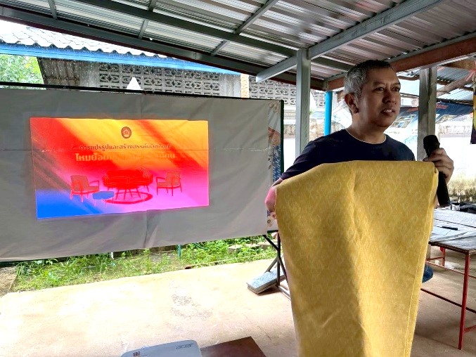 กิจกรรมที่ 5 การอบรมเชิงปฏิบัติการการออกแบบผลิตภัณฑ์ต้นแบบและค่าวัสดุอุปกรณ์ รายละเอียดกิจกรรม ในการอบรมเชิงปฏิบัติการครั้งนี้ ผู้เข้าร่วมได้รับการแนะนำให้ทำความเข้าใจภาพรวมของการออกแบบผลิตภัณฑ์ ตั้งแต่การวิเคราะห์คุณสมบัติของผ้าไหมย้อมครามนางอ่อนโยน เพื่อตัดสินว่าผลิตภัณฑ์ใดเหมาะสมที่สุด เช่น ผ้าคลุมไหล่ เสื้อผ้าแฟชั่น ของตกแต่งบ้าน กระเป๋า หรือผลงานเชิงศิลป์ที่สะท้อนภูมิปัญญาท้องถิ่น กิจกรรมมุ่งเน้นให้ผู้เข้าร่วมเรียนรู้หลักการออกแบบร่วมสมัย การเลือกแพทเทิร์นที่เข้ากับคุณสมบัติของผ้า การจัดองค์ประกอบสี และการผสมผสานเทคนิคทอหรือเทคนิคย้อมเพื่อสร้างเอกลักษณ์เฉพาะตัวในผลิตภัณฑ์ นอกจากด้านดีไซน์แล้ว กิจกรรมยังเน้นการวิเคราะห์ต้นทุน ซึ่งเป็นส่วนสำคัญในการกำหนดราคาผลิตภัณฑ์อย่างเหมาะสม ผู้เรียนได้รับการสอนวิธีคำนวณต้นทุนจากวัสดุที่ใช้ เช่น ผ้าผืน ขนาดของผลิตภัณฑ์ เส้นไหมที่ต้องตัดเย็บ เส้นด้ายประกอบ ซับใน อะไหล่ และค่าแรงที่ใช้ในงานตัดเย็บ การคำนวณนี้ช่วยให้ผู้ผลิตเข้าใจความสัมพันธ์ระหว่างแรงงาน–วัสดุ–เวลา และสามารถกำหนดราคาที่สะท้อนต้นทุนจริง เพิ่มกำไร และยังแข่งขันในตลาดได้อย่างมีประสิทธิภาพ วิธีการดำเนินงาน วิธีการดำเนินงานในกิจกรรมนี้เน้นการเรียนรู้แบบผสมผสานระหว่างการฟังบรรยายเชิงทฤษฎี การดูตัวอย่างจริง และการฝึกลงมือปฏิบัติอย่างใกล้ชิด ผู้เข้าร่วมอบรมได้รับการนำเสนอแนวคิดการออกแบบผลิตภัณฑ์ในระดับสากล เช่น แนวคิด “design thinking” กระบวนการแก้ปัญหาแบบสร้างสรรค์ การวิเคราะห์ปัญหาเชิงผู้ใช้ (user needs) และแนวทางการสร้างผลิตภัณฑ์ที่ทั้งสวยงาม ใช้งานได้จริง และสื่ออัตลักษณ์ของชุมชนได้อย่างชัดเจน การดำเนินงานยังเน้นให้ผู้เรียนเห็นความสำคัญของการสื่อสารอัตลักษณ์ท้องถิ่นผ่านงานดีไซน์ เช่น สีครามที่ไม่เหมือนครามจากพื้นที่อื่น ความละเอียดของเส้นไหมพื้นบ้าน และความประณีตของการทอมือ ซึ่งเป็นจุดเด่นที่สามารถนำมาสร้างมูลค่าเพิ่มได้ ระหว่างการอบรม วิทยากรผู้เชี่ยวชาญจะสาธิตวิธีการวัด การตัด การประกอบชิ้นงาน และการสร้างแบบผลิตภัณฑ์ต้นแบบ พร้อมทั้งอธิบายผลกระทบของขนาด สี และวัสดุต่อรูปแบบผลิตภัณฑ์ ผู้เรียนได้ทดลองปรับแบบ ตัดเย็บชิ้นงานเล็ก ๆ เพื่อให้เข้าใจว่าการออกแบบไม่ได้เป็นเพียงงานศิลปะ แต่เป็นกระบวนการที่ต้องคำนึงถึงต้นทุน เวลา และความสามารถในการผลิตซ้ำอย่างเหมาะสม นอกจากนี้ การคำนวณค่าวัสดุอุปกรณ์ยังเป็นหัวใจสำคัญของกิจกรรม ผู้เรียนได้รับ