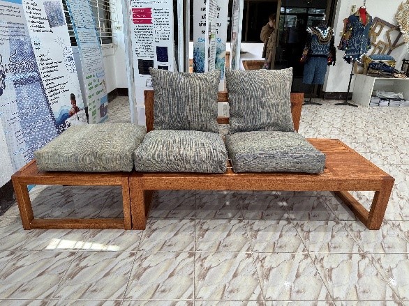 เมื่อวันที่ 1 กันยายน 2568 โครงการไหมย้อมครามบ้านกลางนางอ่อนโยน ได้ดำเนินกิจกรรมการอบรมเชิงปฏิบัติการการแปรรูปผลิตภัณฑ์ผ้าไหมย้อมครามต้นแบบ ผ้าทอจากฟืมขยายขนาดหน้ากว้าง 2.5 เมตร ทอได้ 10 เมตร ยังเหลืออีก 2 เมตร เพื่อที่จะนำมาแปรรูปด้วยการตัดเย็บเป็นเบาะนั่งประกอบเฟอร์นิเจอร์ไม้ 1 ชุดเฟอร์นิเจอร์ไม้ 1 ชุด มี 2 ส่วน ส่วนแรกเป็นโต๊ะโซฟายาวขนาดความกว้าง 1.50 เมตร ความสูง 80 เซนติเมตร และมีโต๊ะวางของอีก 1 ตัว เป็นส่วนประกอบ ตอนนี้ประกอบชิ้นส่วนเสร็จสิ้นแล้ว ยังคงเหลือชุดผ้าไหมย้อมคราม (นางอ่อนโยน) ที่จะทำเป็นเบาะประกอบ ซึ่งอยู่ในขั้นตอนของการตัดเย็บ รายงานโดย นายวีระยุทธ์ คำปาน วันที่รายงาน 29/09/2568 [20425] |