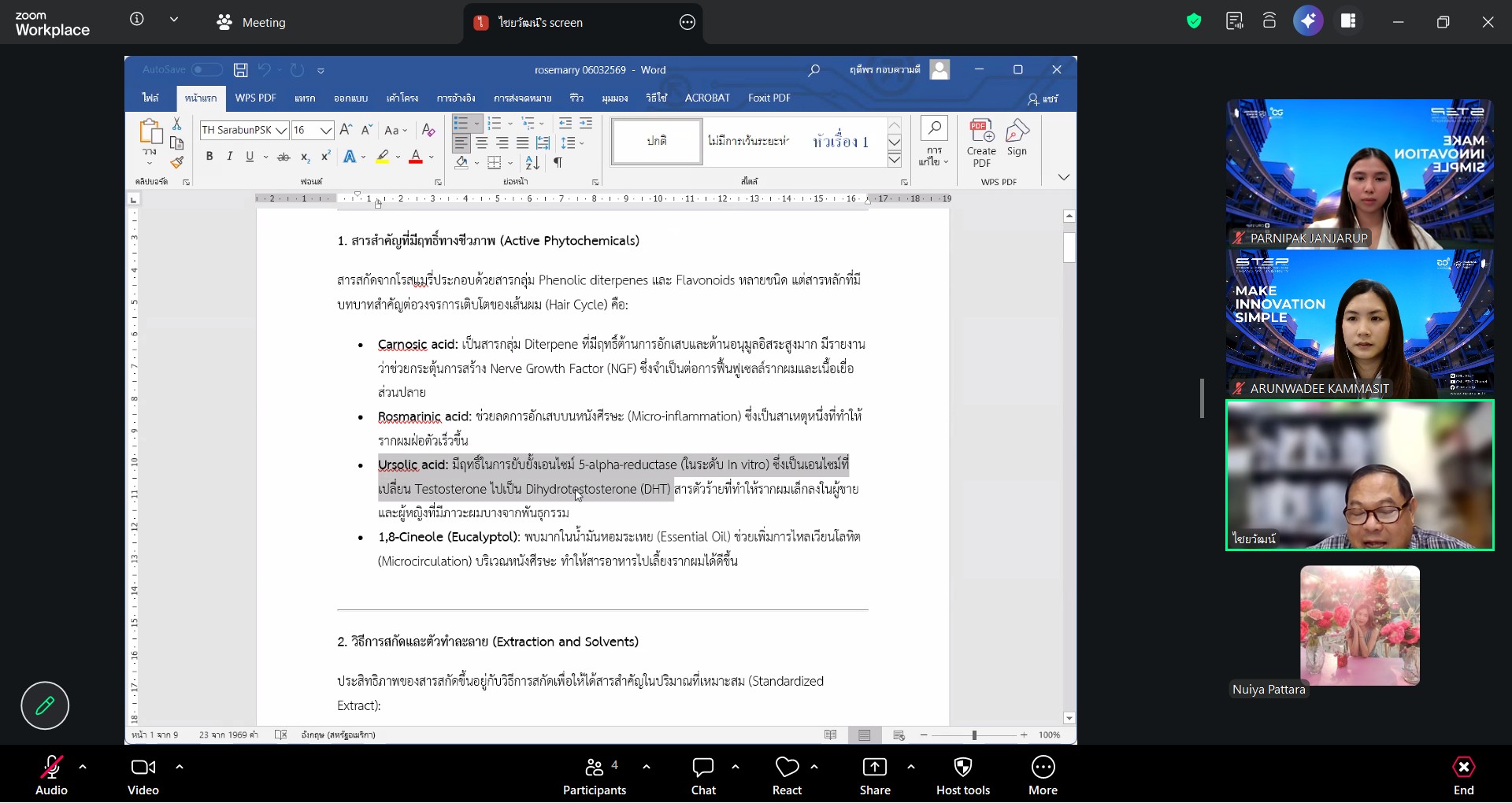 กิจกรรมให้คำปรึกษา ผู้ประกอบการยาดมสมุนไพรต้องการข้อมูลในการจดทะเบียนยาดมสมุนไพร อาจารย์ได้อธิบายเรื่องสัดส่วนและปริมาณขของส่วนผสมในยาดม พร้อมทั้งแนะนำการขึ้นทะเบียนตามหมวดหมู่และประเภทของสมุนไพรต่างๆ เพื่อให้ผู้ประกอบการเตรียมข้อมูลในการขึ้นทะเบียน รายงานโดย นายวันโชค มณีเดช วันที่รายงาน 02/04/2569 [21380] |