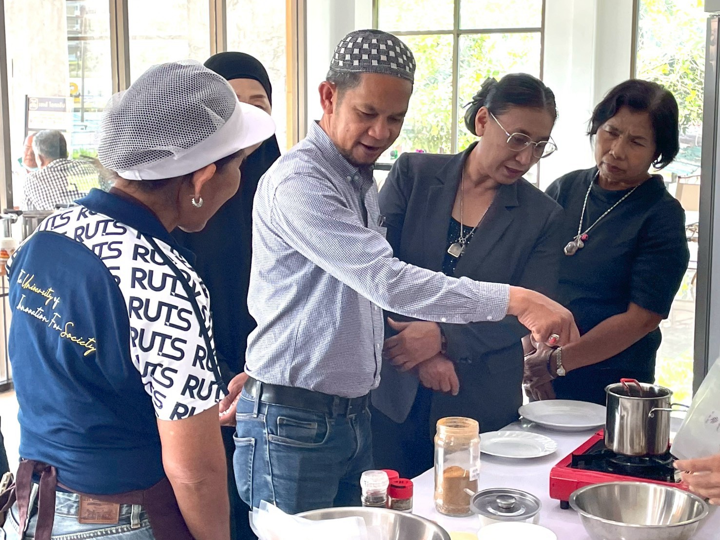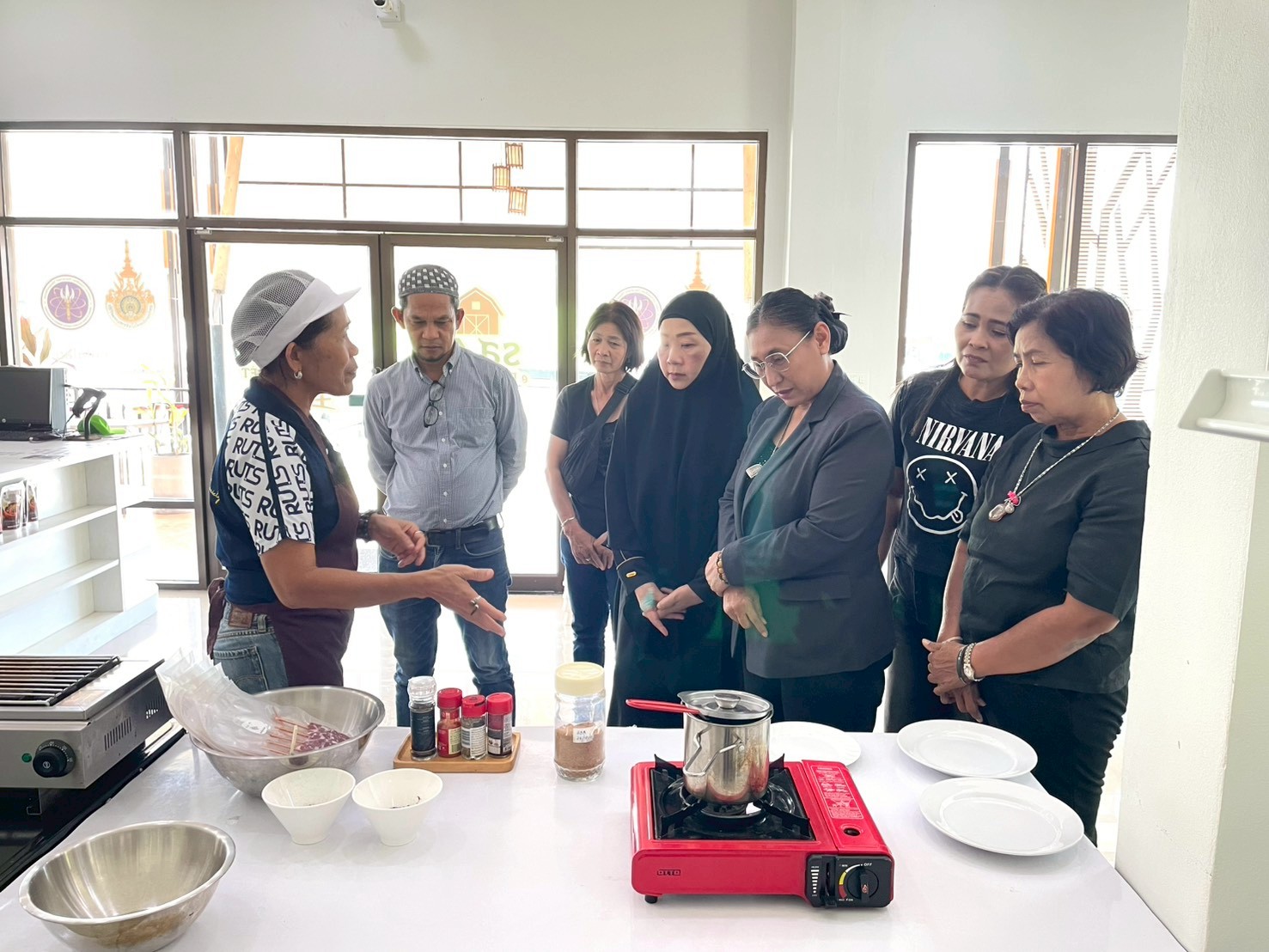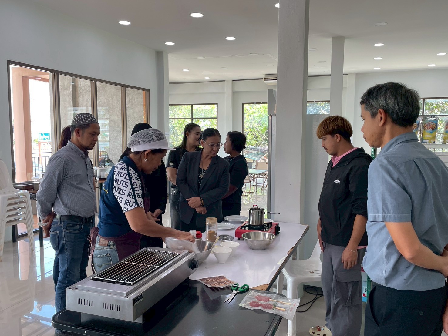 ช่วงบ่าย เวลา 13.00 – 16.00 น. อบรมเชิงปฏิบัติการ การพัฒนาผลิตภัณฑ์เครื่องปรุงรสเนื้อ (หมัก ทอด ปิ้งย่าง) จากสมุนไพรในพื้นที่ วิทยากรโดย ผศ.จรีพร เชื้อเจ็ดตน และคณะอาจารย์คณะอุตสาหกรรมเกษตร • ผลการดำเนินกิจกรรม : ผู้เข้าร่วมอบรมสามารถนำความรู้ แนวทางจากวิทยากรเรื่องสมุนไพรในท้องถิ่นมาแปรรูปเป็นผลิตภัณฑ์ที่หลากหลาย เช่น ผลิตภัณฑ์เพื่อสุขภาพและความงาม และ ผลิตภัณฑ์อาหาร และ ยังสามารถสร้างเครือข่ายชุมชน ทำให้เกิดกลุ่มอาชีพแปรรูปสมุนไพรในระดับท้องถิ่น โดยชุมชนสามารถนำภูมิปัญญาดั้งเดิมมาบูรณาการกับงานวิจัยเพื่อสร้างรายได้เสริมต่อไปในอนาคต ผู้เข้าร่วมยังได้รับการฝึกปฏิบัติการพัฒนาผลิตภัณฑ์เครื่องปรุงรสในเนื้อสัตว์และแลกเปลี่ยนความคิดเห็นทักษะในกิจกรรมการอบรมในช่วงบ่ายอีกด้วย