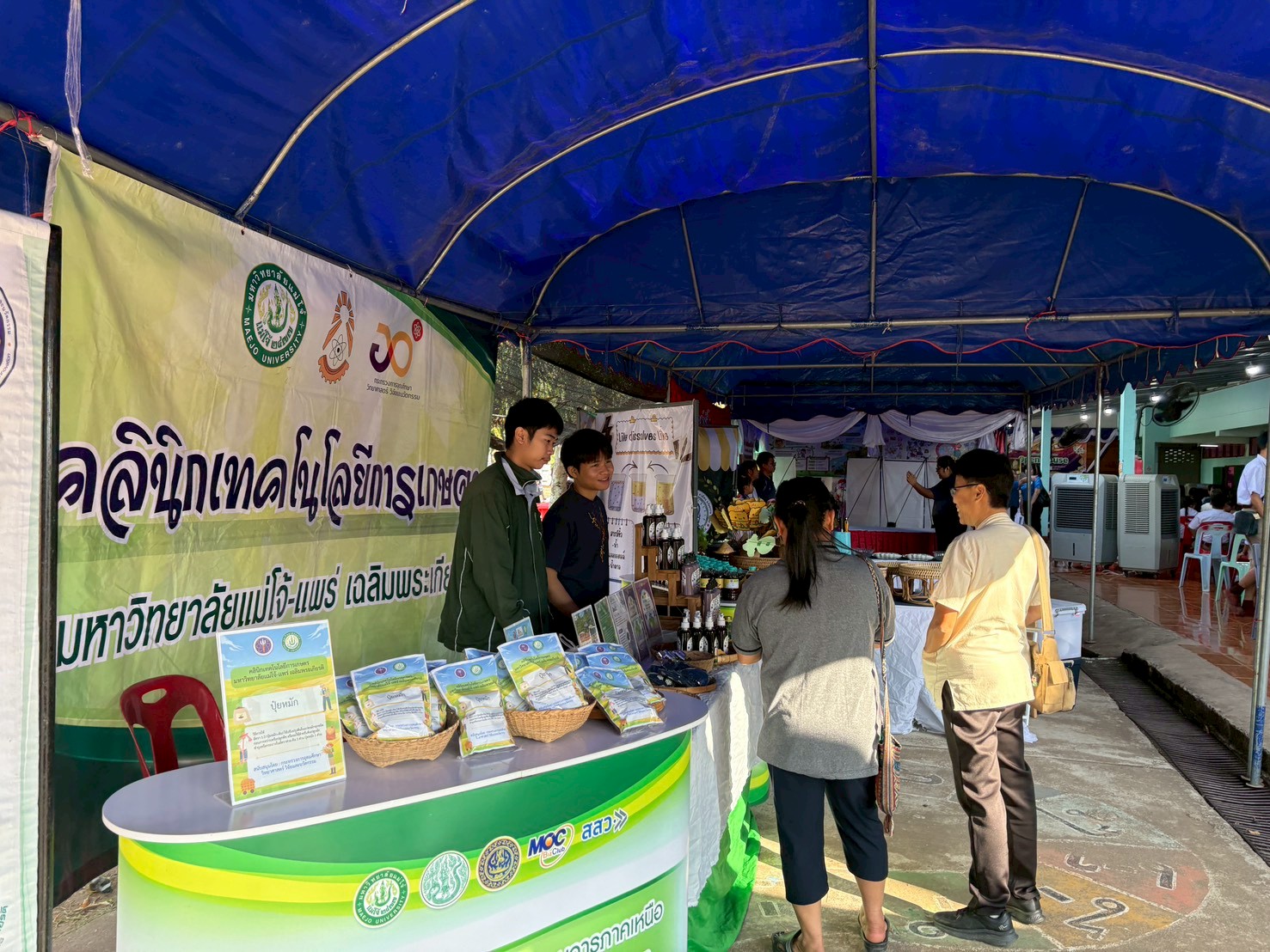 ในระหว่างวันที่ 1-10 ธันวาคม พ.ศ. 2568 ทางคลินิกเทคโนโลยี ได้เข้าร่วมจัดนิทรรศการเเละร่วมกิจกรรม Workshop ในงานมหกรรมของดีเมืองเเพร่เเละงานกาชาด ประจำปี 2568 ณ สนามกีฬาองค์การบริหารส่วนจังหวัดเเพร่ ทางคลินิกเทคโนโลยีได้จัดนิทรรศการให้บริการในเรื่อง ปุ๋ยโบกาฉิ ปุ๋ยเบญจคุณ น้ำหมักจุลินทรีย์สังเคราะห์เเสง ปุ๋ยน้ำอินทรีย์ เเละจัดเเสดงผลิตภัณฑ์บ้านจำวาย ได้เเก่ เเชมพู ครีมนวด ยาหม่อง เเละสบู่ ผลิตภัณฑ์จากบ้านทุ่งศรี ได้เเก่ กระบวย กระเป๋ายาม เเก้วกะลา เเละดอกไม้ประดิษฐ์ ผลิตภัณฑ์ข้าวบ้านหนองเเขม ได้เเก่ ข้าวไรซ์เบอร์รี่ ข้าวหอมมะลิ ข้าวสามสายพันธุ์ เเละข้าวก้องหอมมะลิ ผลิตภัณฑ์น้ำพริกน้ำย้อย ผลิตภัณฑ์หน่อไม้ดอง เเละบริการให้คำปรึกษาทางด้านการเกษตร ให้เมล็ดพันธุ์พืชผัก ปุ๋ยน้ำอินทรีย์ น้ำหมักจุลินทรีย์สังเคราะห์เเสงเเก่เกษตรกร ประชาชนที่เข้าร่วม จำนวน 200 คน