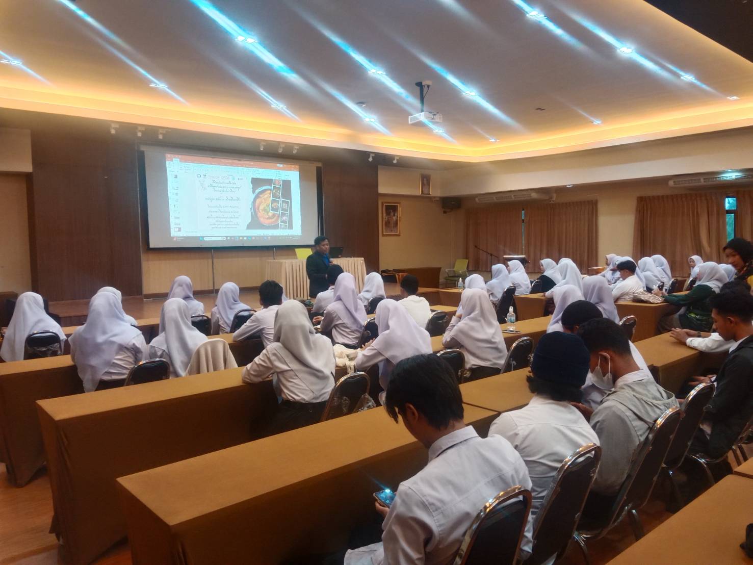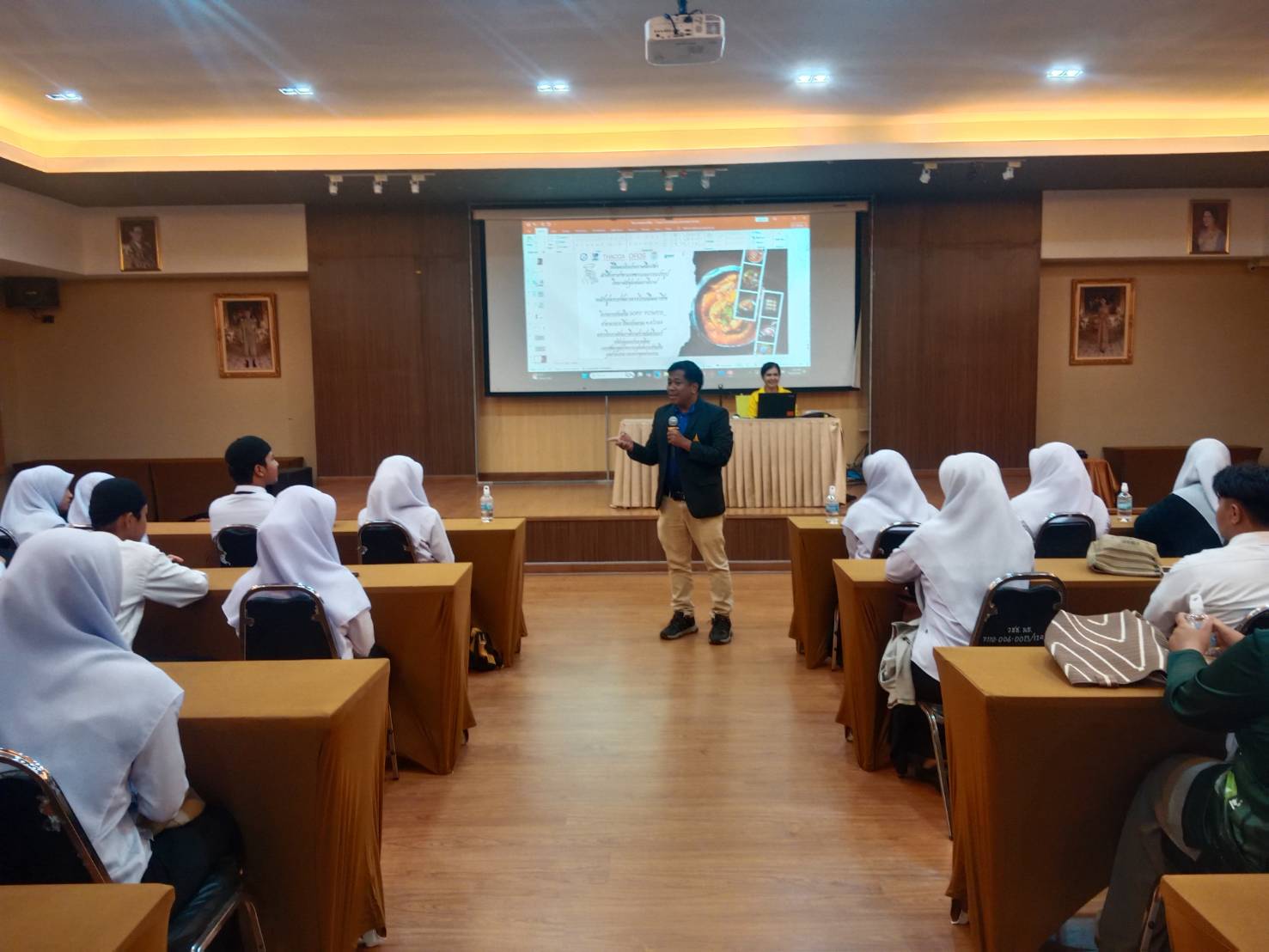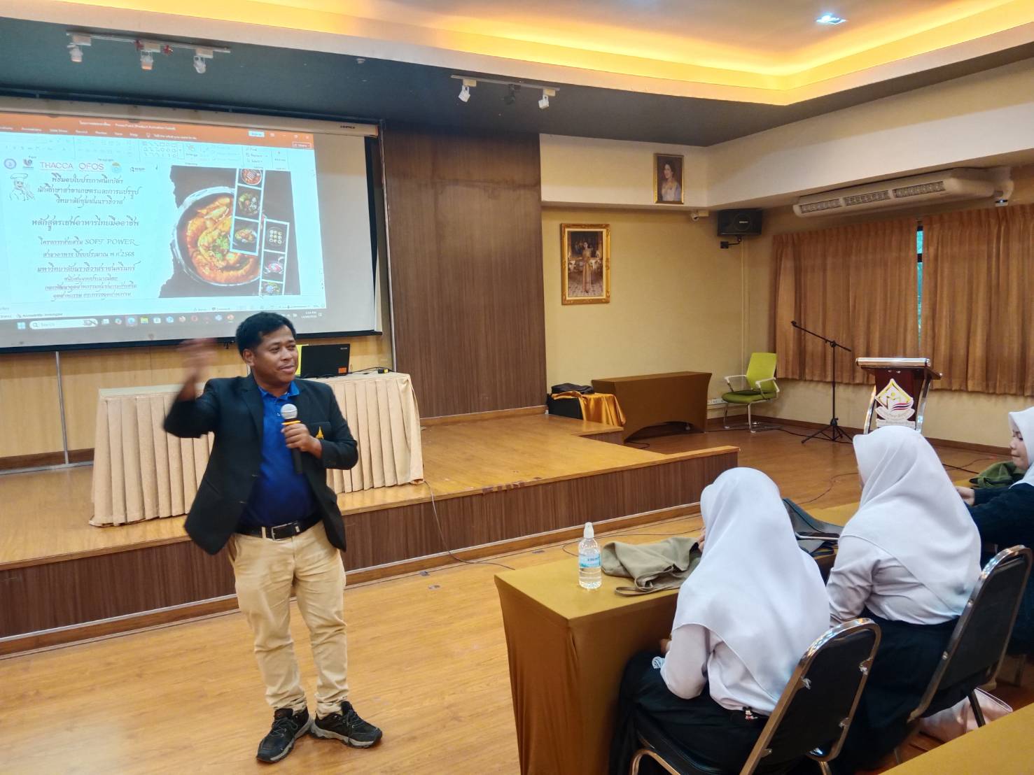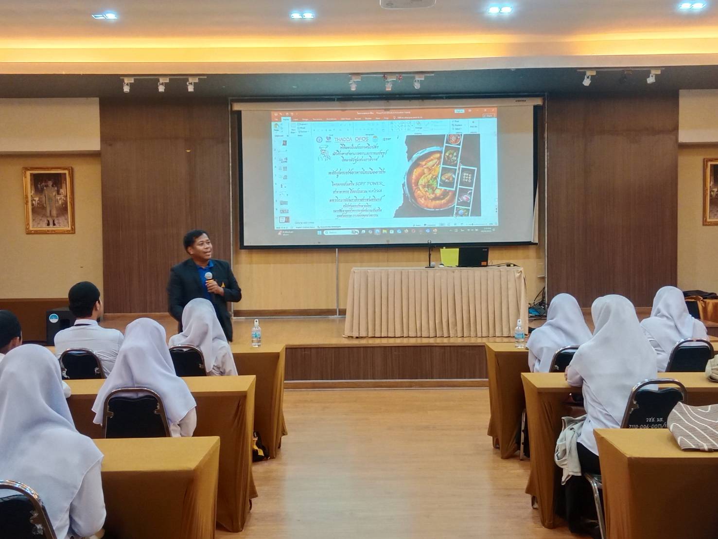 เมื่อวันที่ 20 ตุลาคม 2568 ทางคลินิกเทคโนโลยี มหาวิทยาลัยนราธิวาสราชนครินทร์ ได้ให้บริการวิชาการแก่นักศึกษา วิทยาลัยชุมชนนราธิวาส ในหัวข้อเกี่ยวกับกระบวนการประกอบอาหารไทย และการพัฒนาทักษะสู่การเป็นเชฟมืออาชีพด้านอาหารไทย ให้แก่นักศึกษา เพื่อเสริมสร้างความรู้ ความเข้าใจ และพัฒนาทักษะด้านการประกอบอาหารไทยอย่างถูกต้องตามหลักวิชาชีพ รวมทั้งส่งเสริมให้นักศึกษาสามารถนำความรู้ไปประยุกต์ใช้ในการประกอบอาชีพหรือสร้างรายได้ในอนาคตได้ นอกจากนั้นแล้ว ยังเป็นการส่งเสริมความร่วมมือทางวิชาการระหว่างสถาบันการศึกษาในการถ่ายทอดองค์ความรู้และประสบการณ์ด้านวิชาชีพให้แก่นักศึกษา เพื่อพัฒนาศักยภาพของผู้เรียนให้มีทักษะที่สอดคล้องกับความต้องการของตลาดแรงงาน และสามารถนำความรู้ไปประยุกต์ใช้ให้เกิดประโยชน์ต่อการประกอบอาชีพในอนาคตได้อย่างเหมาะสม รายงานโดย นายวิรัตน์ หน่อแดง วันที่รายงาน 16/03/2569 [21165] |