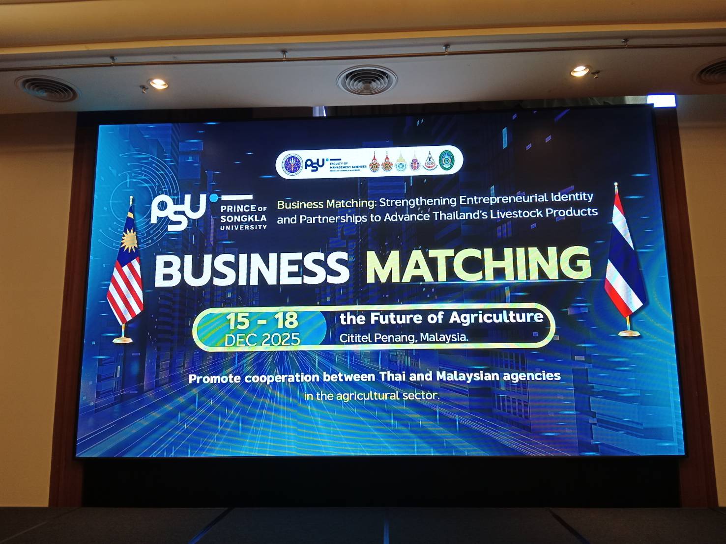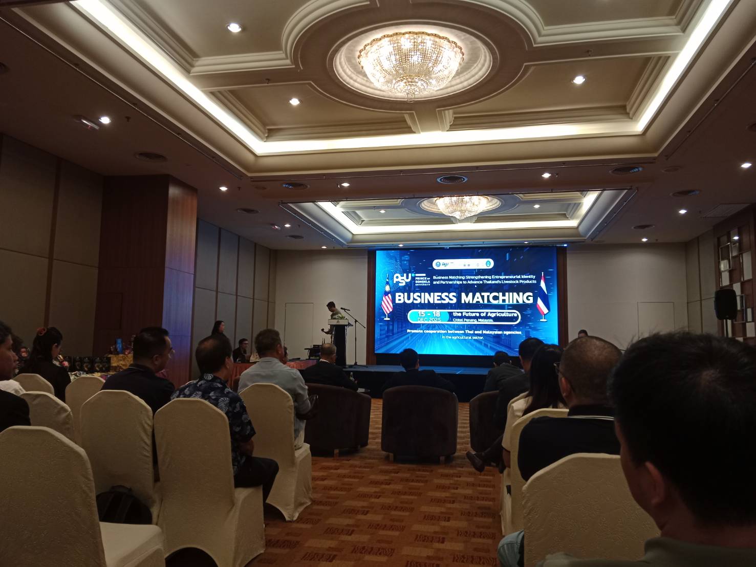 เมื่อวันที่ 15 - 18 ธันวาคม 2568 ทางคลินิกเทคโนโลยี ได้เข้าร่วมกิจกรรมส่งเสริมด้านการตลาด ภายใต้โครงการพัฒนาศักยภาพการผลิตและเพิ่มมูลค่าผลิตภัณฑ์ปศุสัตว์ ด้วยวิทยาศาสตร์ เทคโนโลยีและนวัตกรรม ประจำปีงบประมาณ 2568 ซึ่งจัดโดย ผศ.ลภัสวัฒน์ ศุภผลกุลนันทร์ รองคณบดีฝ่ายพัฒนานักศึกษา และศิษย์เก่าสัมพันธ์ คณะวิทยาการจัดการ มหาวิทยาลัยสงขลานครินทร์ ณ ปีนัง ประเทศมาเลเซีย โดยกิจกรรมดังกล่าวได้มีการนำผู้ประกอบการผลิตและแปรรูปผลิตภัณฑ์ปศุสัตว์ เข้าร่วมและได้นำสินค้าแปรรูปไปเจรจาธุรกิจ และทดลองตลาด เพื่อสร้างโอกาสทางการค้า ขยายช่องทางการตลาดในต่างประเทศ รวมถึงการรับฟังความคิดเห็นและข้อเสนอแนะจากผู้บริโภคและผู้ประกอบการในพื้นที่ เพื่อนำมาปรับปรุงและพัฒนาผลิตภัณฑ์ให้มีคุณภาพและสอดคล้องกับความต้องการของตลาดสากล โดยกิจกรรมดังกล่าวได้รับผลตอบรับเป็นอย่างดี ผู้ประกอบการสามารถสร้างเครือข่ายทางธุรกิจ ได้รับความสนใจจากผู้บริโภคและคู่ค้าในต่างประเทศ อีกทั้งยังได้ข้อมูลเชิงลึกด้านพฤติกรรมผู้บริโภคและแนวโน้มตลาด ซึ่งเป็นประโยชน์ต่อการพัฒนาศักยภาพการแข่งขันของผลิตภัณฑ์ปศุสัตว์ในอนาคต รายงานโดย นายวิรัตน์ หน่อแดง วันที่รายงาน 17/03/2569 [21173] |