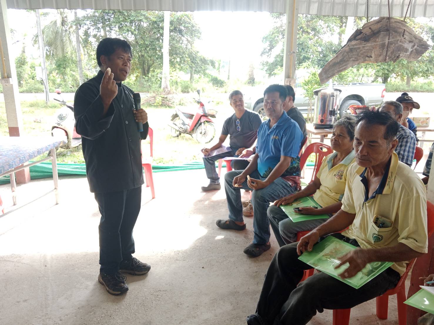 เมื่อวันที่ 19 กุมภาพันธ์ 2569 ทางคลินิกเทคโนโลยี ได้จัดกิจกรรมอบรมเชิงปฏิบัติการเกี่ยวกับกระบวนการแปรรูปเพิ่มมูลค่าผลิตภัณฑ์จากเนื้อโค เพื่อเพิ่มมูลค่า เช่น แคบบวัว เนื้อฝอย เนื้อแดดเดียว เนื้อสวรรค์ และเนื้อเสียบไม้ ให้กับกลุ่มวิสาหกิจชุมชนกลุ่มเลี้ยงโคตำบลเสาเภา จังหวัดนครศรีธรรมราช โดยมีผู้เข้าร่วมกิจกรรมจำนวน 30 ราย โดยกิจกรรมดังกล่าวมีวัตถุประสงค์เพื่อ เสริมสร้างความรู้และทักษะด้านการแปรรูปผลิตภัณฑ์จากเนื้อโคให้มีมาตรฐาน สามารถเพิ่มมูลค่าให้กับผลผลิตทางการเกษตร ลดการจำหน่ายในรูปแบบวัตถุดิบ และสร้างโอกาสในการประกอบอาชีพและเพิ่มรายได้ให้แก่เกษตรกรในชุมชน ภายหลังการอบรม กลุ่มเกษตรกรได้นำองค์ความรู้ที่ได้รับไปประยุกต์ใช้ในการพัฒนาผลิตภัณฑ์ของกลุ่มให้มีความหลากหลาย มีคุณภาพ และมีบรรจุภัณฑ์ที่เหมาะสมยิ่งขึ้น ซึ่งช่วย สร้างมูลค่าเพิ่มให้กับผลิตภัณฑ์ สามารถต่อยอดสู่การจำหน่ายในตลาดชุมชนและตลาดออนไลน์ อันนำไปสู่การสร้างรายได้และความเข้มแข็งให้กับกลุ่มวิสาหกิจชุมชนอย่างยั่งยืน รายงานโดย นายวิรัตน์ หน่อแดง วันที่รายงาน 17/03/2569 [21174] |