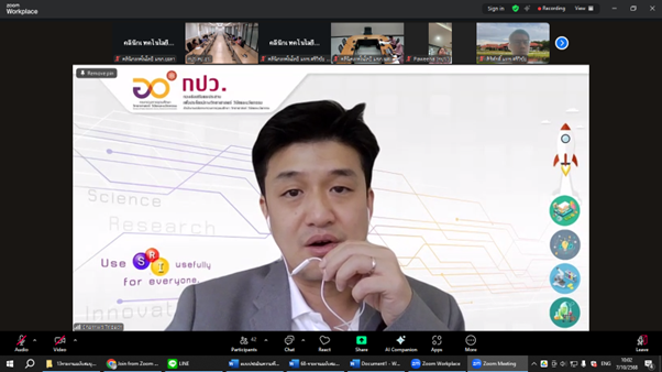 2. การนำเสนอผลการดำเนินงานคลินิกเทคโนโลยี มหาวิทยาลัยราชภัฏยะลา ภายใต้โครงการการบริการให้คำปรึกษาและแก้ไขปัญหาเทคโนโลยีในชุมชนภาคใต้ชายแดน (แพลตฟอร์มบริการให้คำปรึกษาและข้อมูลเทคโนโลยี (Technology Consulting Service : TCS) โดย อาจารย์ ดร.ภัทรวดี เอียดเต็ม รองผู้อำนวยการสถาบันวิจัยฯ และผู้จัดการคลินิกเทคโนโลยี มหาวิทยาลัยราชภัฏยะลา พร้อมด้วยการให้ข้อมูลจากตัวแทนผู้ประกอบการ "สวนทุเรียนคุณบุญรวย" ผ่านระบบออนไลน์