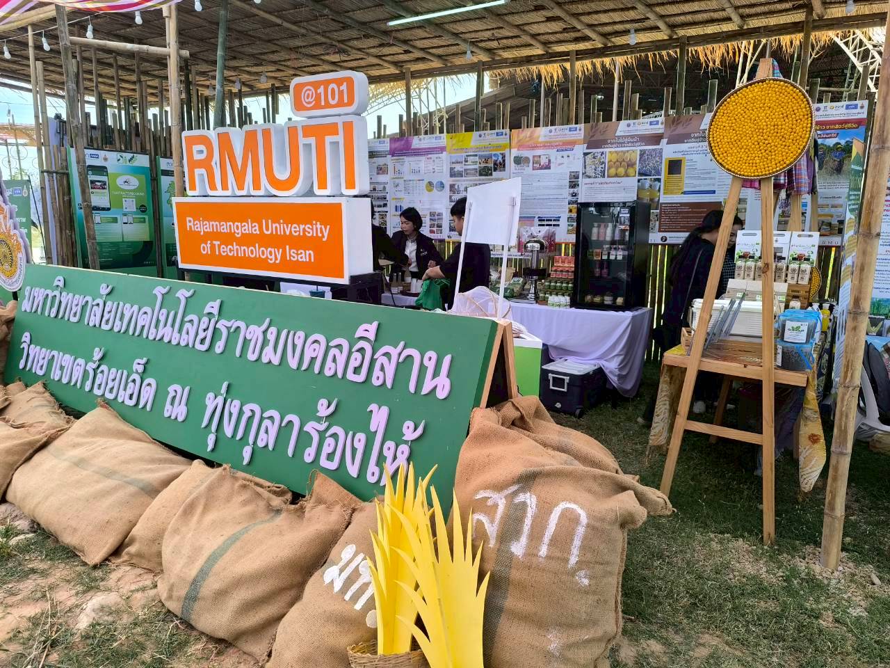 มหาวิทยาลัยเทคโนโลยีราชมงคลอีสาน วิทยาเขตสุรินทร์ ร่วมจัดนิทรรศการและร่วมงาน “เทศกาลข้าวหอมมะลิโลก ครั้งที่ 25” นำองค์ความรู้สู่การพัฒนาชุมชนและเศรษฐกิจฐานราก จังหวัดร้อยเอ็ด ณ อ่างเก็บน้ำธวัชชัย ตำบลมะอึ อำเภอธวัชบุรี จังหวัดร้อยเอ็ด ระหว่างวันที่ 10–14 ธันวาคม 2568 โดยมุ่งเน้นการนำงานวิจัยและนวัตกรรมสู่การปฏิบัติจริง เพื่อยกระดับคุณภาพชีวิตชุมชนและเพิ่มมูลค่าสินค้าเกษตร โดยมีนายชัชวาลย์ ไทยยิ่ง นางสาวกรรณทิมา พันธ์ศรี บุคลากรสังกัดสำนักงานวิทยาเขสุรินทร์ เป็นเจ้าหน้าประจำบูท และได้จัดนิทรรศการ ชื่อผลงาน : นิทรรศการ “จากใบไม้สู่ผืนผ้า จากดินสู่ข้าว จากสัตว์สู่ชีวิต” ได้นำเอา