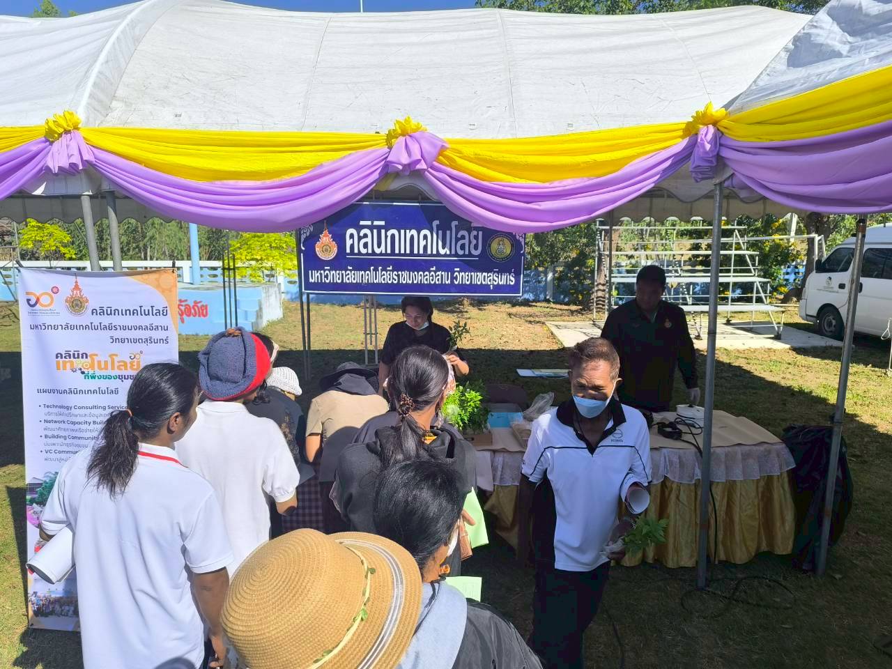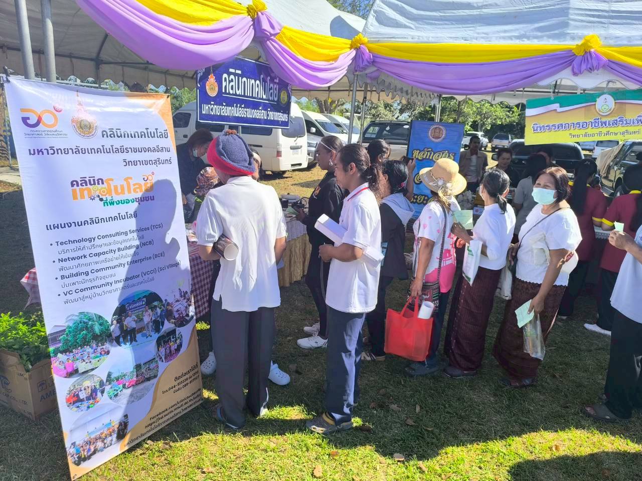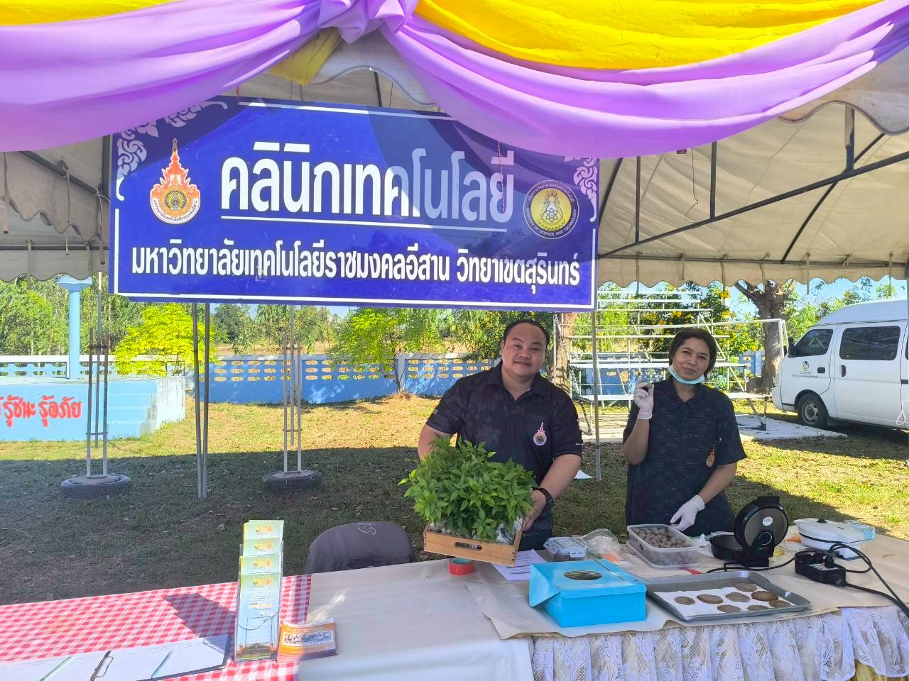 วันที่ 17 ธันวาคม 2568คลินิกเทคโนโลยี มหาวิทยาลัยเทคโนโลยีราชมงคลอีสาน วิทยาเขตสุรินทร์ ได้เข้าร่วมโครงการคลินิกเกษตรเคลื่อนที่ในพระราชานุเคราะห์ฯ ประจำปีงบประมาณ พ.ศ. 2569 ไตรมาสที่ 1 ณ โรงเรียนบ้านโสมน ตำบลบัวโคก อำเภอท่าตูม จังหวัดสุรินทร์ โดยได้ออกจัดนิทรรศการบริการให้คำปรึกษาให้ความรู้เรื่องการทำขนมวาฟเฟิลแป้งกรอบจากแป้งข้าว การจัดอบรมหลักสูตรระยะสั้น โดยมีเจ้าหน้าที่ประจำบูท  นางณิชาภา สารธิยากุล นายชัชวาลย์ ไทยยิ่ง ที่ให้คำปรึกษาและรับบริการให้กับเกษตรกรผู้มาเยี่ยมชมงานครั้งนี้