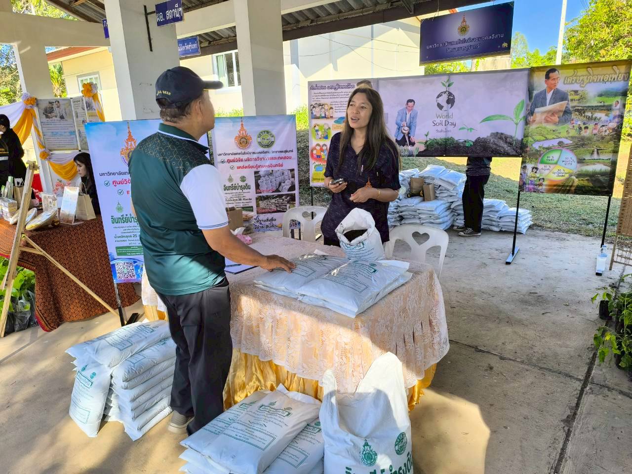 วันที่ 24 ธันวาคม 2568 มหาวิทยาลัยเทคโนโลยีราชมงคลอีสาน วิทยาเขตสุรินทร์ ร่วมกิจกรรมวันดินโลก ปี 2568 (World Soil Day)ภายใต้หัวข้อ “Healthy Soils for Healthy Cities : ดินดีที่สมบูรณ์ สู่เมืองที่สมดุล เกื้อกูลชีวิต”ณ สถานีพัฒนาที่ดินสุรินทร์ ตำบลคอโค อำเภอเมืองสุรินทร์ จังหวัดสุรินทร์ รองศาสตราจารย์ ดร.สำเนาว์ เสาวกูล รองอธิการบดีประจำวิทยาเขตสุรินทร์ มหาวิทยาลัยเทคโนโลยีราชมงคลอีสาน และบุคลากร เข้าร่วมกิจกรรมงานวันดินโลก ปี 2568 (World Soil Day) โดยมี นายจำเริญ แหวนเพ็ชร ผู้ว่าราชการจังหวัดสุรินทร์ เป็นประธานในพิธีเปิดงาน ซึ่งจัดขึ้นเพื่อเฉลิมพระเกียรติ พระบาทสมเด็จพระบรมชนกาธิเบศร มหาภูมิพลอดุลยเดชมหาราช บรมนาถบพิตร เนื่องในวันดินโลก วันที่ 5 ธันวาคม 2568 สำหรับกิจกรรมภายในงาน ประกอบด้วยกิจกรรมภายในอาคาร อาทิ นิทรรศการเฉลิมพระเกียรติ “นักวิทยาศาสตร์ดินเพื่อมนุษยธรรม” การแสดงหลักการตามแนวพระราชดำริ และนิทรรศการทางวิชาการด้านดิน เช่น ความเป็นมาของวันดินโลก ความสำคัญของทรัพยากรดิน รวมถึงการจัดแสดงฐานเรียนรู้ในรูปแบบ นิทรรศการมีชีวิต ได้แก่ ฐานเรียนรู้ปฐพีวิทยาและเทคโนโลยีนวัตกรรม ฐานเรียนรู้เกษตรอินทรีย์ใส่ใจมาตรฐานและการตรวจวัดจัดการ และฐานเรียนรู้ระบบอนุรักษ์ดินและน้ำ เพื่อส่งเสริมคุณภาพชีวิตและความเป็นอยู่ที่ดีของเกษตรกรอย่างยั่งยืน