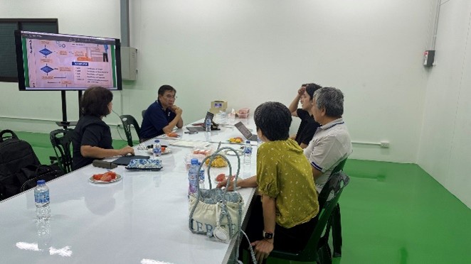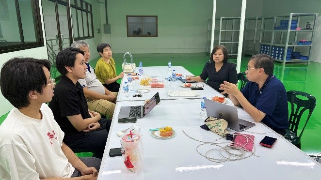 กิจกรรมที่ 7 วันพฤหัสบดีที่ 4 ธันวาคม 2568 (การดำเนินงานร่วมกับหน่วยงานภายในมหาวิทยาลัย) ผศ. ดร. ทัศวัลย์ คัมภีระพันธุ์ ที่ปรึกษาและผู้ประสานงานคลินิกเทคโนโลยี ได้รับการติดต่อประสานงานทางโทรศัพท์จากคุณนันทิยา รุ่งเลิศวิกรัยกุล สำนักอุทยานวิทยาศาสตร์และอุตสาหกรรม มหาวิทยาลัยเทคโนโลยีพระจอมเกล้าธนบุรี เพื่อขอคำปรึกษาเกี่ยวกับการประยุกต์ใช้เทคโนโลยีที่เหมาะสมในการพัฒนาผลิตภัณฑ์จากปลาสลิด ทั้งนี้ สำนักอุทยานวิทยาศาสตร์และอุตสาหกรรม มจธ. ดำเนินโครงการภายใต้แผนงาน “การสร้างผู้ประกอบการรายใหม่ในภูมิภาค (New Regional Startups Platform)” ซึ่งมีวัตถุประสงค์เพื่อใช้ความเชี่ยวชาญของบุคลากรในมหาวิทยาลัยในการพัฒนาผู้ประกอบการฐานเทคโนโลยีและนวัตกรรมในภูมิภาค ให้สามารถเติบโตได้ในรูปแบบธุรกิจที่หลากหลาย เช่น Startup, SME และวิสาหกิจชุมชน เพื่อเสริมสร้างความเข้มแข็งทางเศรษฐกิจในพื้นที่อย่างยั่งยืน ผู้ประกอบการมีความต้องการพัฒนาผลิตภัณฑ์เดิม คือ “ปลาสลิดร้า” ให้เป็นผลิตภัณฑ์ใหม่ที่มีมูลค่าเพิ่ม คลินิกเทคโนโลยี มจธ. จึงรับเรื่องและดำเนินการจัดหาผู้เชี่ยวชาญที่เหมาะสม โดยได้ประสานงานกับ รศ. ดร. พรรณจิรา วงศ์สวัสดิ์ ภาควิชาจุลชีววิทยา คณะวิทยาศาสตร์ ซึ่งมีความเชี่ยวชาญด้านเทคโนโลยีอาหาร เข้าร่วมให้คำปรึกษา ต่อมาได้กำหนดนัดหมายลงพื้นที่วินิจฉัยสถานประกอบการ ณ บริษัทสยามสลิดอมรฟาร์ม อำเภอบางปลาม้า จังหวัดสุพรรณบุรี ในวันที่ 4 ธันวาคม 2568 การดำเนินงาน คณะทำงานประกอบด้วย
