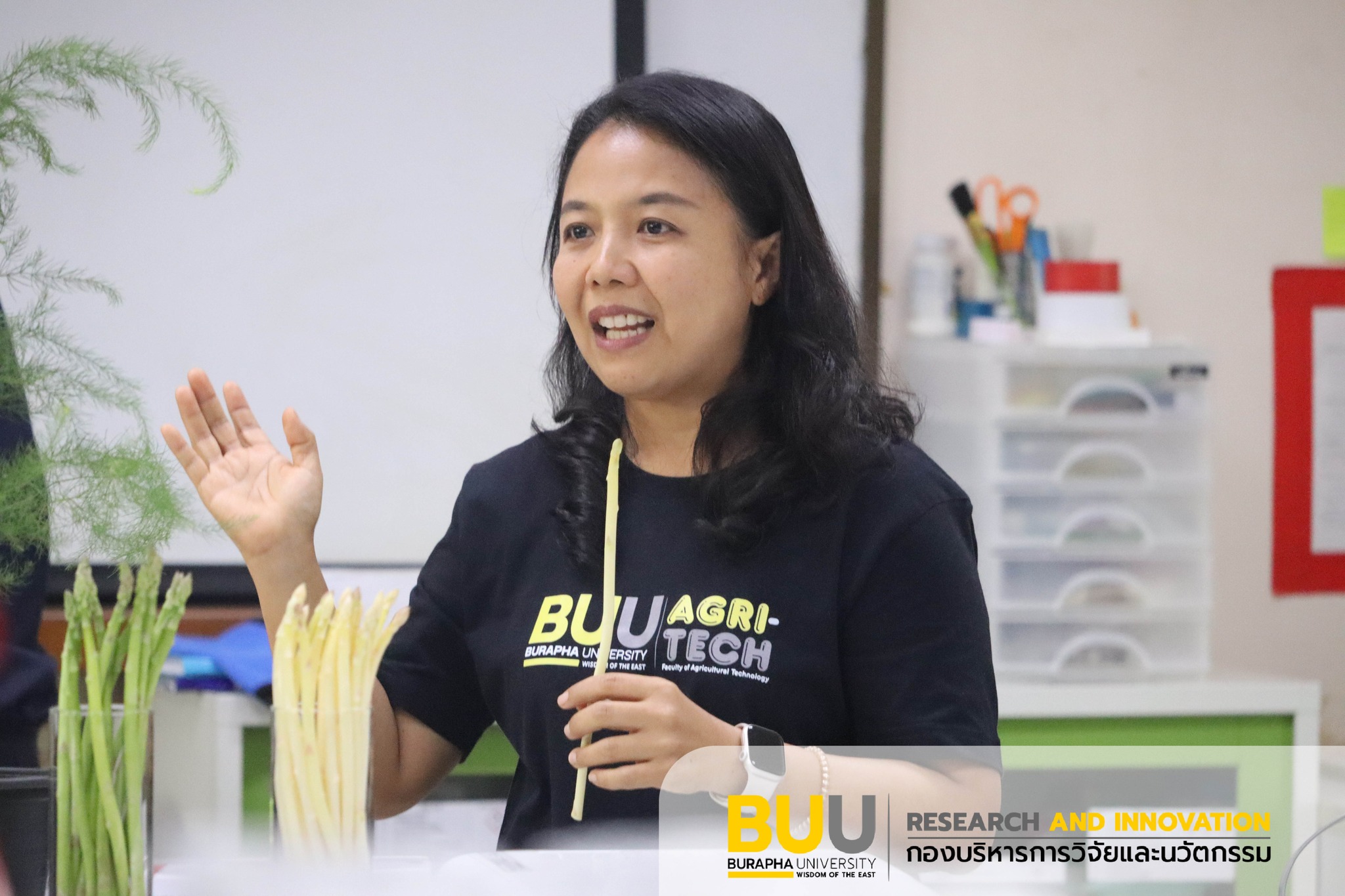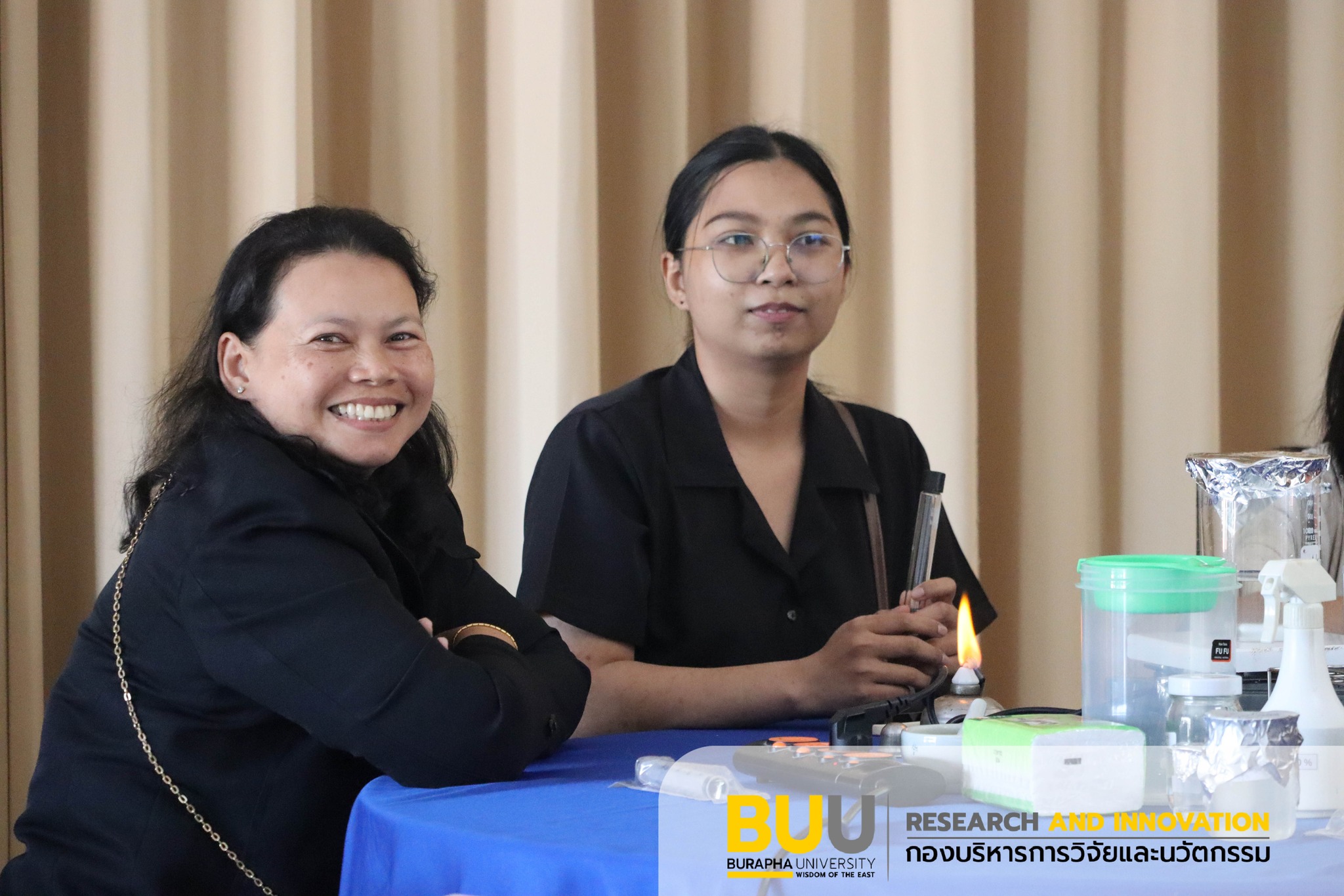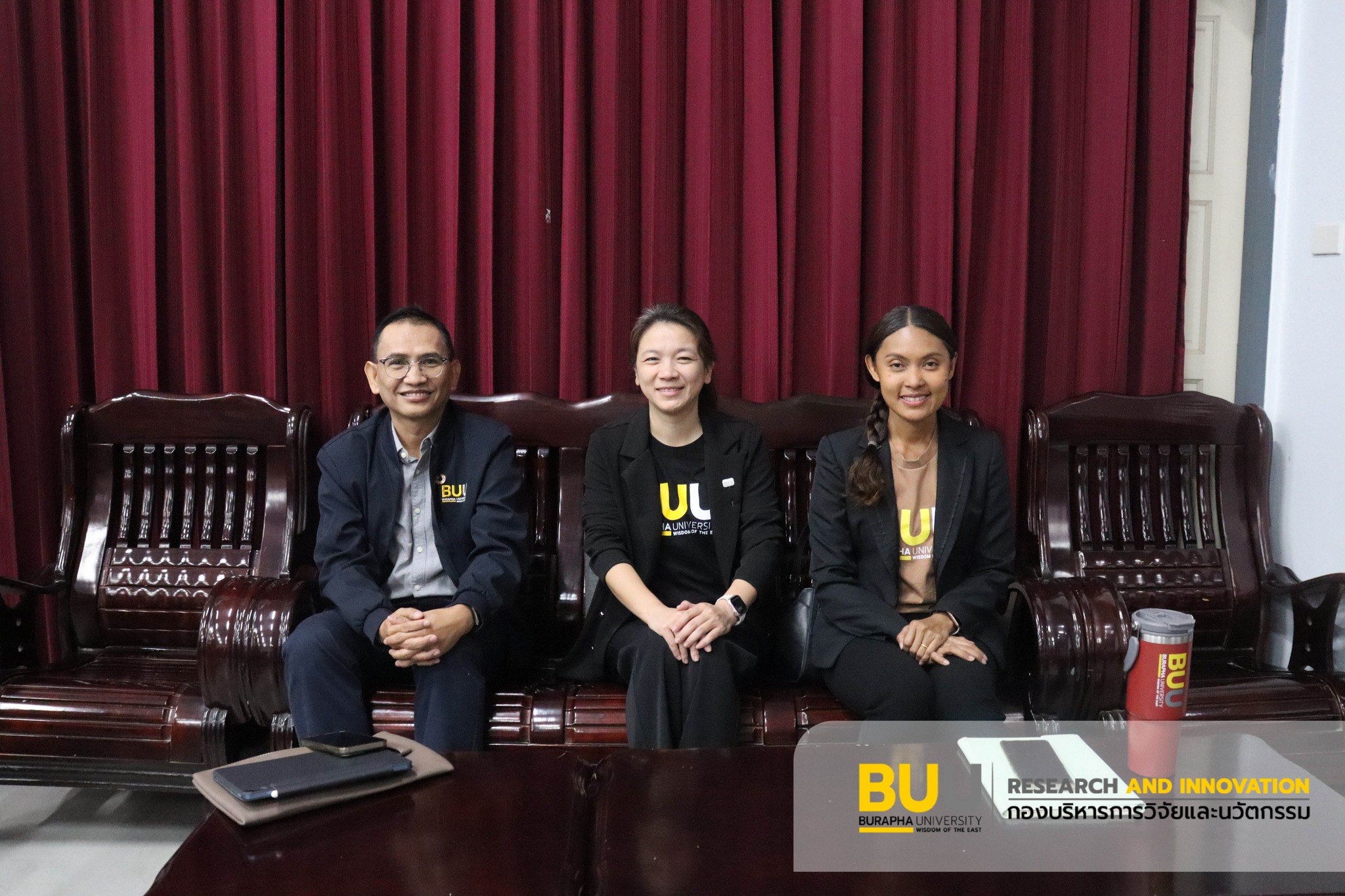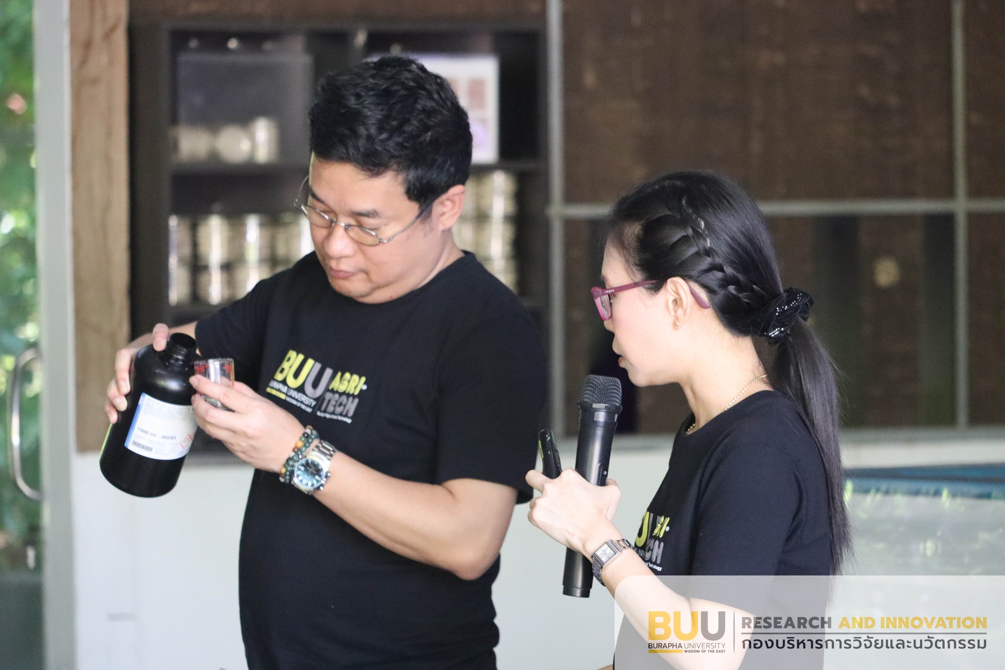 รองศาสตราจารย์ ดร.นิรมล ธรรมวิริยสติ ผู้รักษาการแทนรองอธิการบดีฝ่ายวิจัยและนวัตกรรม พร้อมด้วย ผู้ช่วยศาสตราจารย์ ดร.ไพทูล แก้วหอม ผู้ช่วยอธิการบดีฝ่ายถ่ายทอดเทคโนโลยีและ