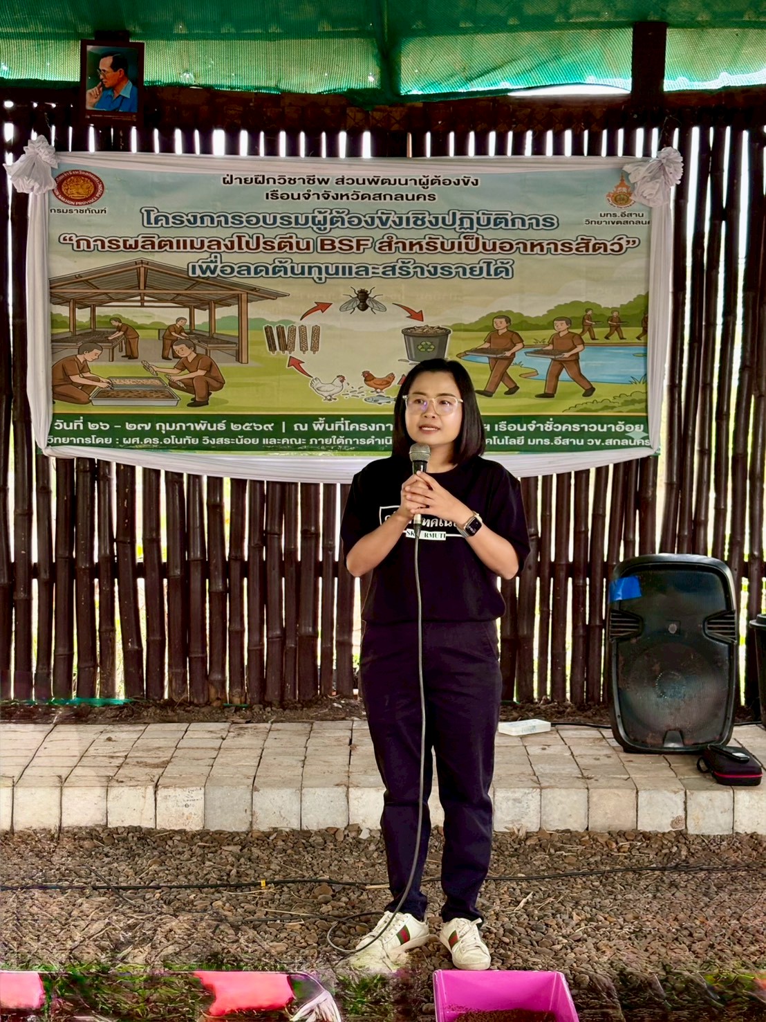 คลินิกเทคโนโลยี พร้อมด้วย ผศ.ดร.อโนทั วิงสระน้อย และคณะทำงานจากคณะทรัพยากรธรรมชาติ มหาวิทยาลัยเทคโนโลยีราชมงคลอีสาน วิทยาเขตสกลนคร ร่วมกับ เรือนจำจังหวัดสกลนคร จัดกิจกรรมอบรมเชิงปฏิบัติการในหลักสูตร "การผลิตแมลงโปรตีน BSF สำหรับเป็นอาหารสัตว์เพื่อลดต้นทุนและสร้างรายได้" ณ พื้นที่โครงการโคกหนองนาฯ เรือนจำชั่วคราวนาน้อย จังหวัดสกลนคร โดยมี นายณรงค์พงศ์ พิศิลป์ ผู้บัญชาการเรือนจำจังหวัดสกลนคร เป็นประธานในพิธีเปิด