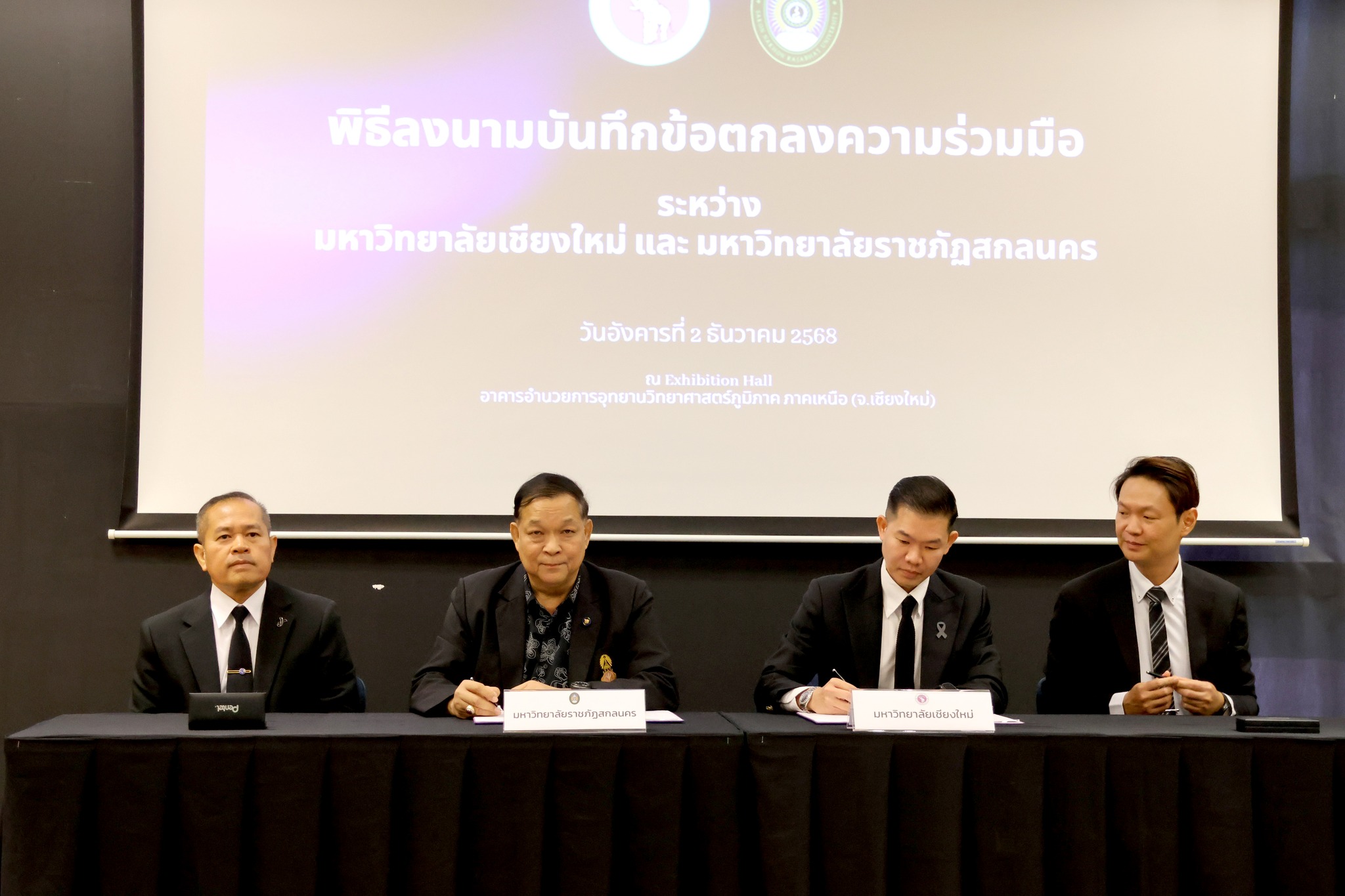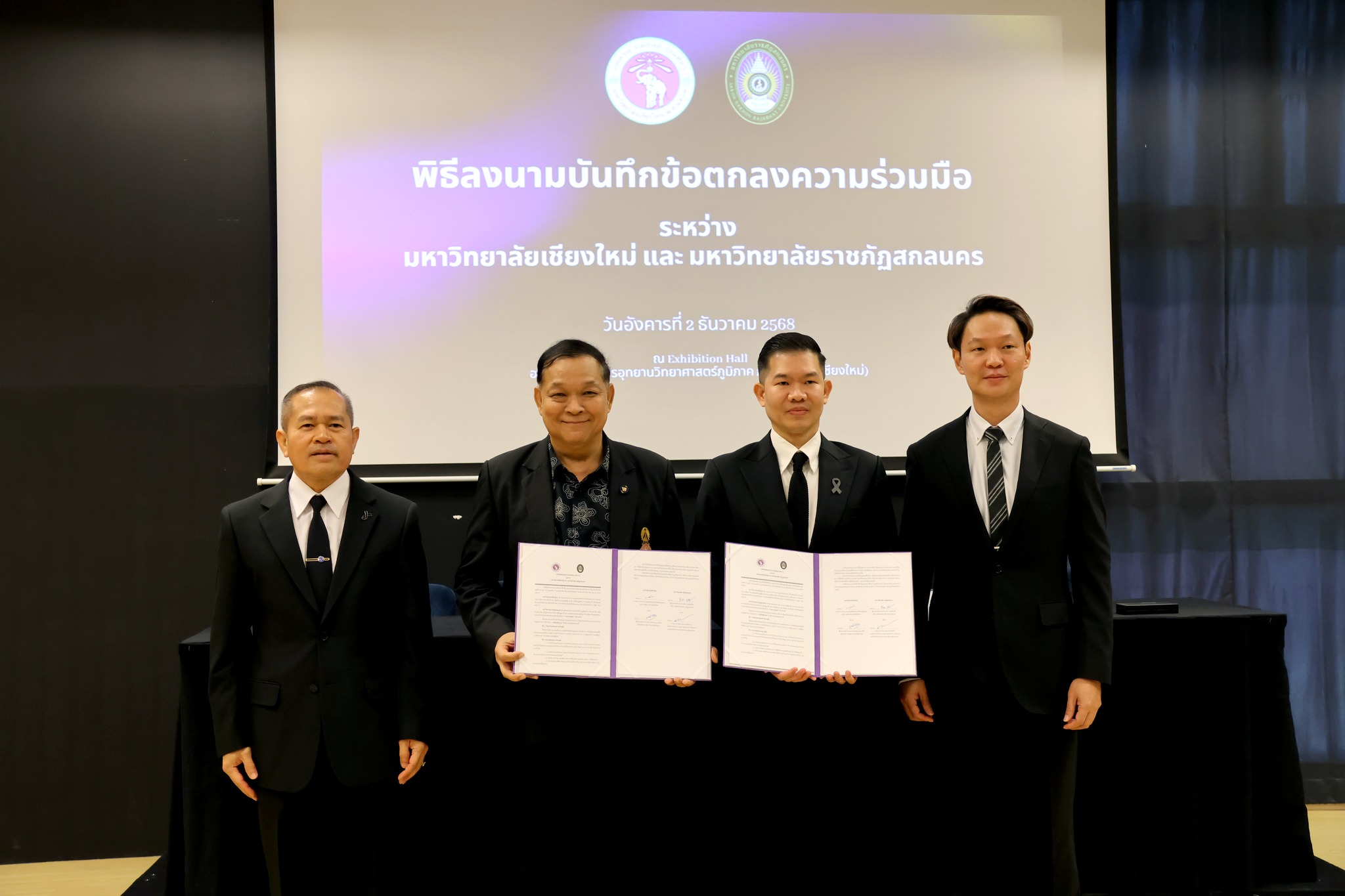 ในงานเดียวกัน ยังมีพิธีลงนาม บันทึกข้อตกลงความร่วมมือทางวิชาการ (MOU) ระหว่างมหาวิทยาลัย โดยมีผู้แทน ผศ.ดร.ชนม์เจริญ แสวงรัตน์ ผู้ช่วยอธิการบดี มหาวิทยาลัยเชียงใหม่ และ ผู้ช่วยศาสตราจารย์ชาคริต ชาญชิตปรีชา อธิการบดีมหาวิทยาลัยราชภัฏสกลนคร ร่วมลงนาม พร้อมรับฟังการบรรยายแนะนำ ศูนย์วิจัยเชิงธุรกิจด้านเทคโนโลยีพลาสมาสำหรับเกษตรและชีวภาพ (Agriculture and Bio Plasma Technology Center: ABPlas) ซึ่งเป็นกลไกสำคัญในการผลักดันงานวิจัยสู่การใช้ประโยชน์ในภาคเกษตร ชีวภาพ และอุตสาหกรรมที่เกี่ยวข้อง